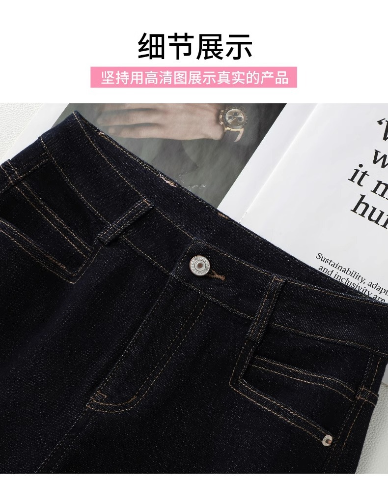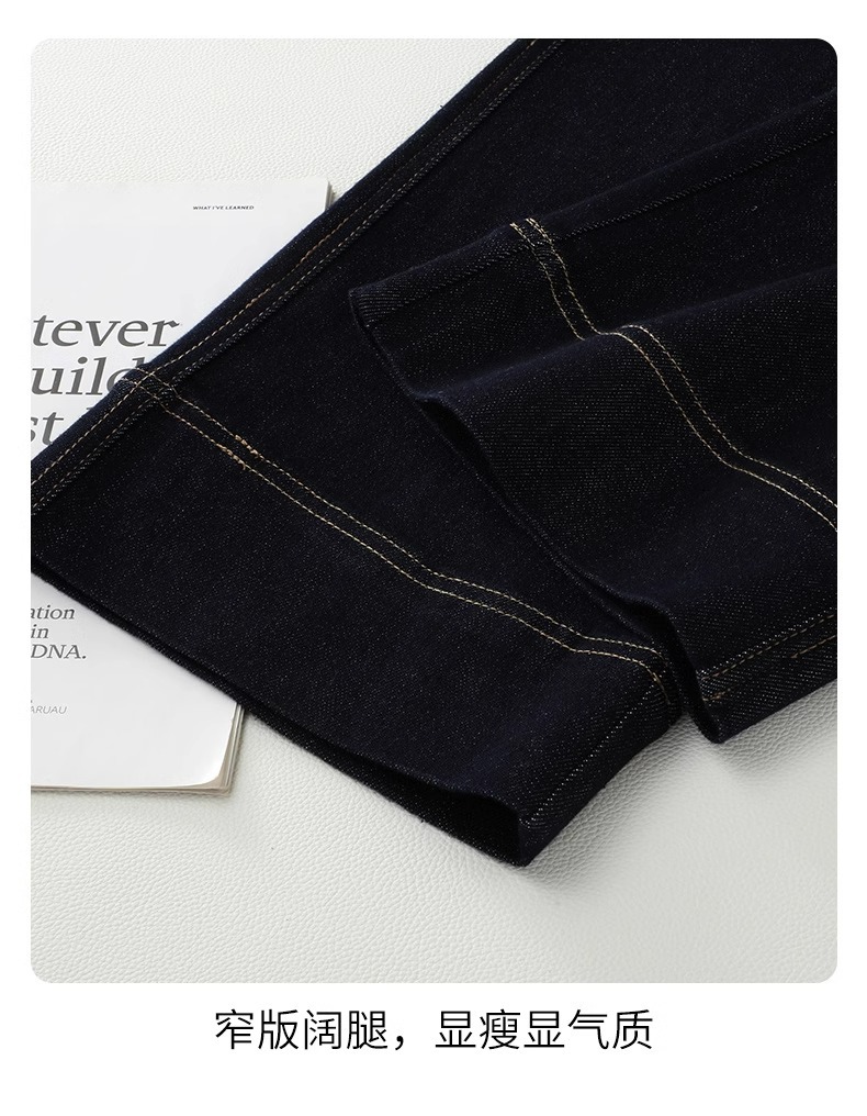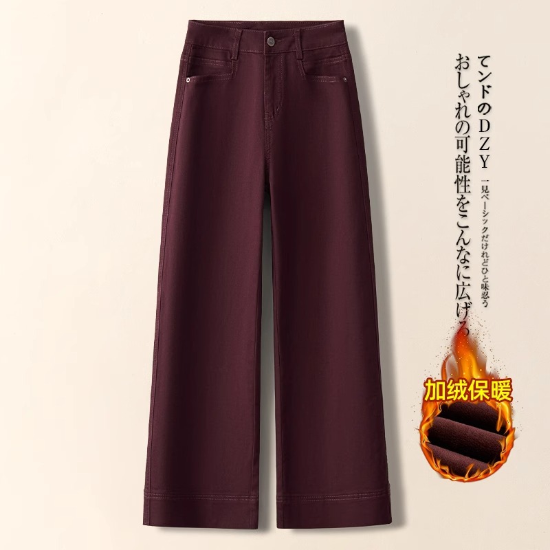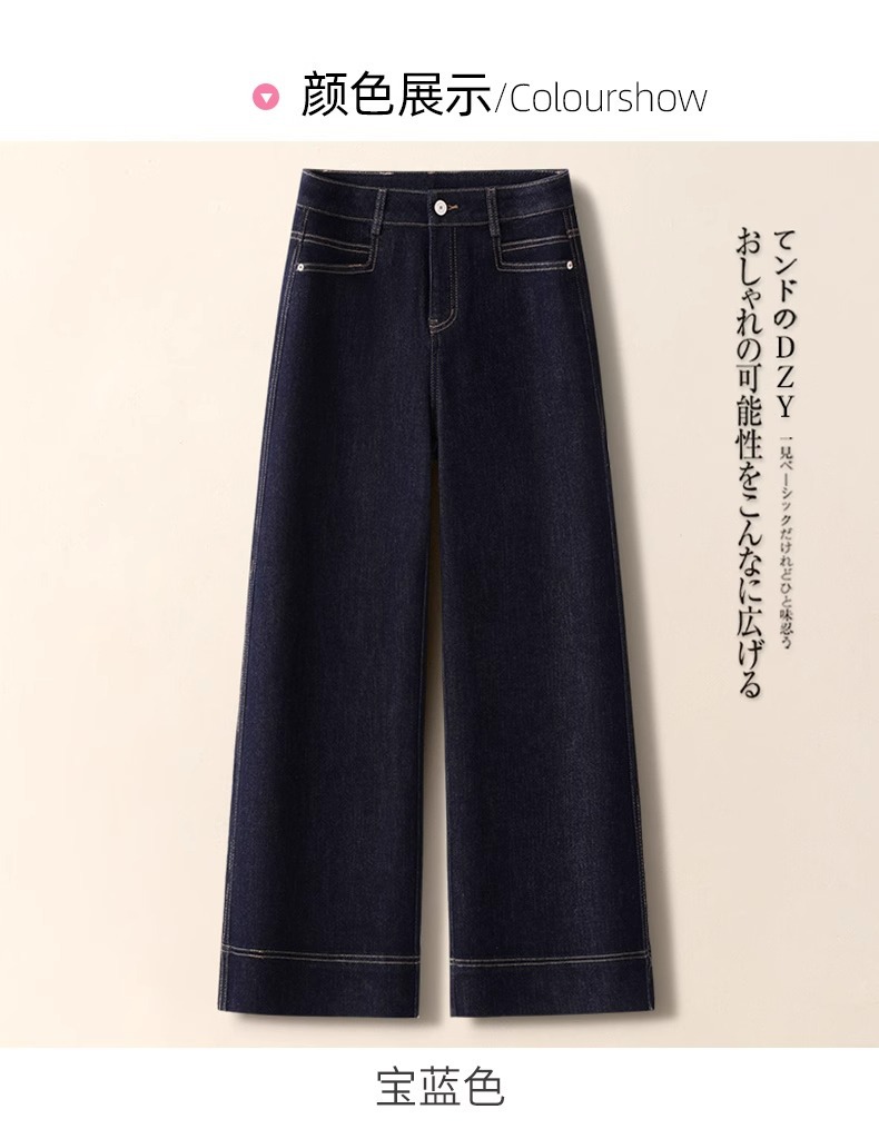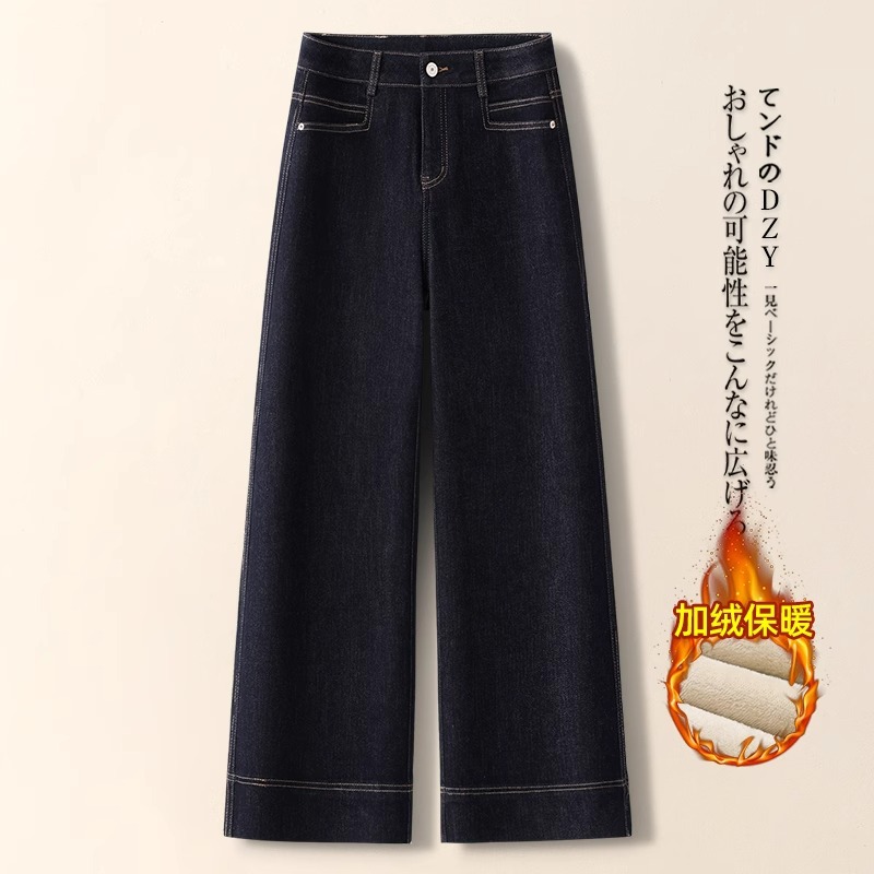 데님 블루 청바지 여성용 가을 겨울 2025년 하이웨이스트 소형 체형용 플리스 안감 9부 스트레이트 와이드 팬츠 플리스 안감 보온스토어 가기