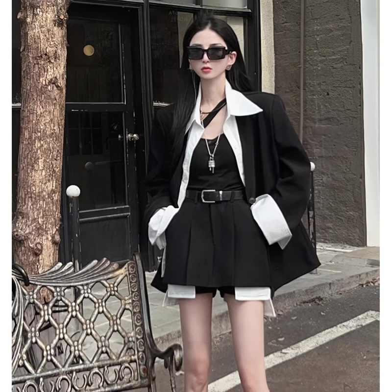 2025 봄과 가을 새로운 한국 스타일 바느질 세트 재킷 벨트 컬로 하이 엔드 센스 패션 투피스 세트스토어 가기