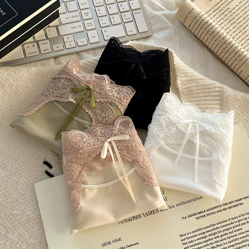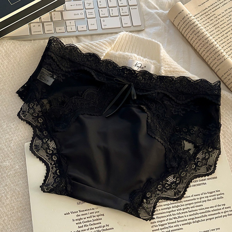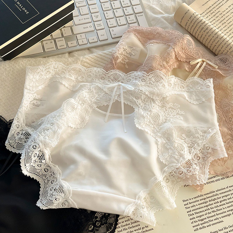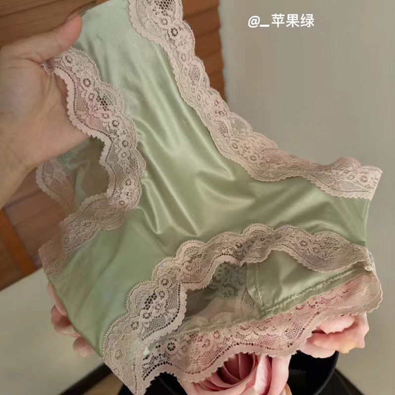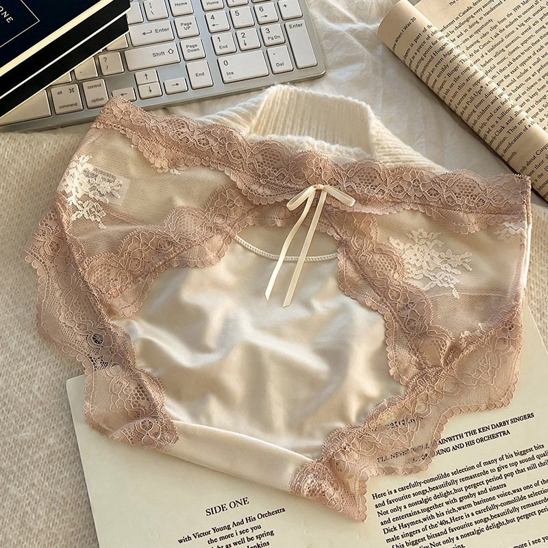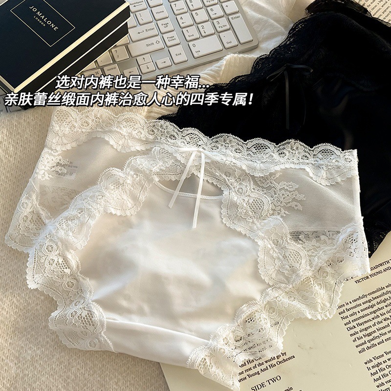 하트 새틴 ~ 레이스 팬티 여성 투명 메쉬 순수한 섹시한 낮은 허리 코튼 가랑이 소녀 브리프.