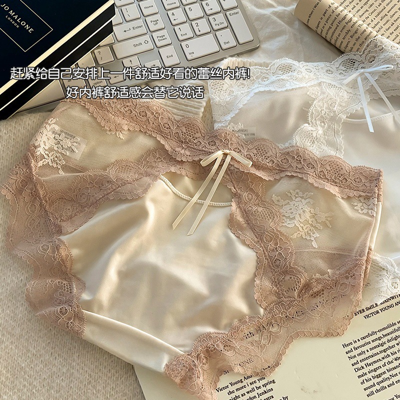 하트 새틴 ~ 레이스 팬티 여성 투명 메쉬 순수한 섹시한 낮은 허리 코튼 가랑이 소녀 브리프.스토어 가기