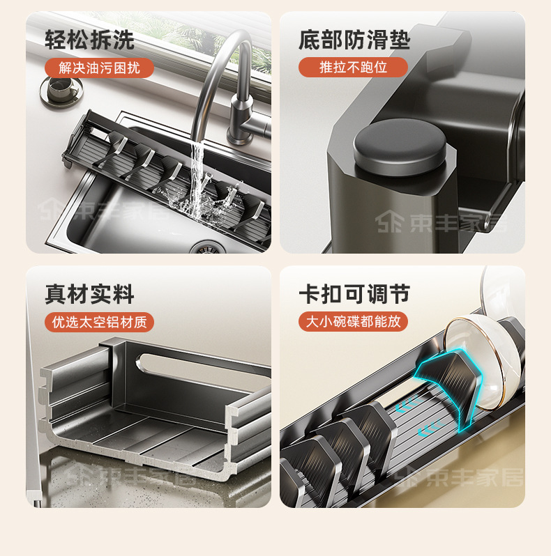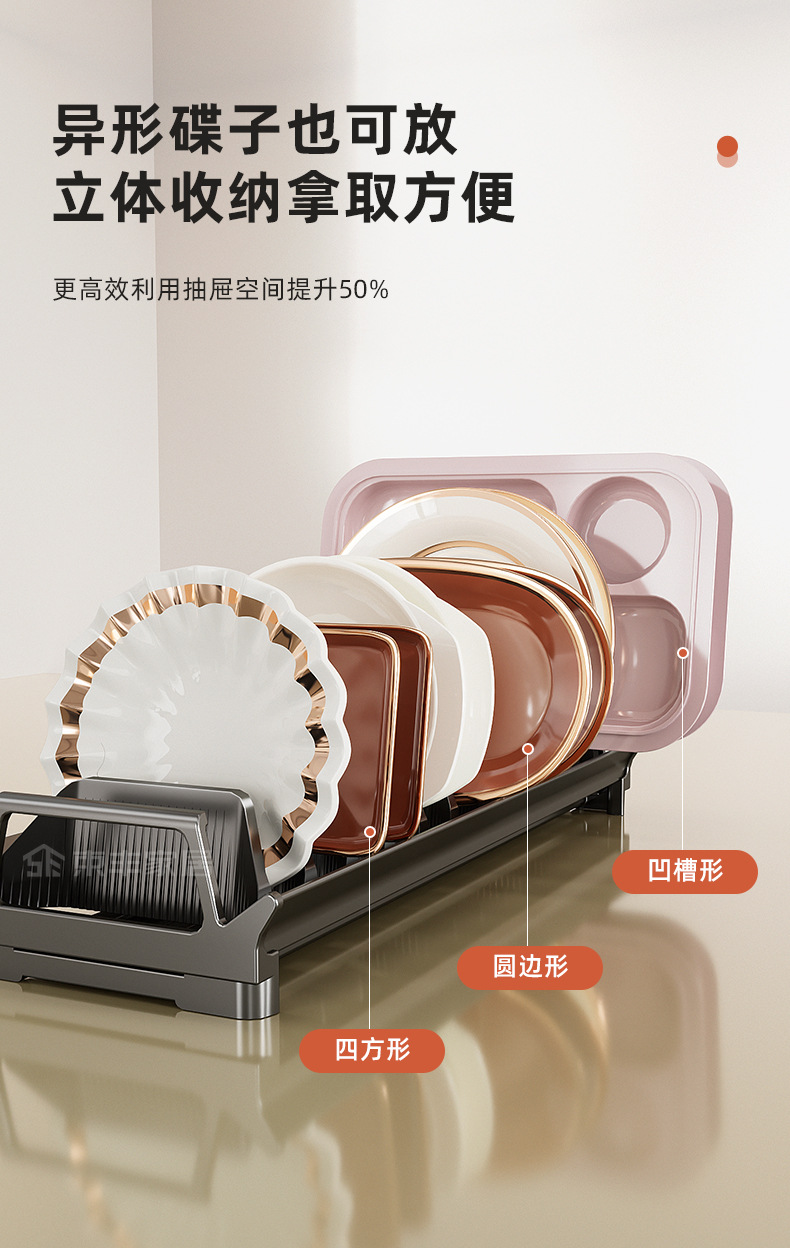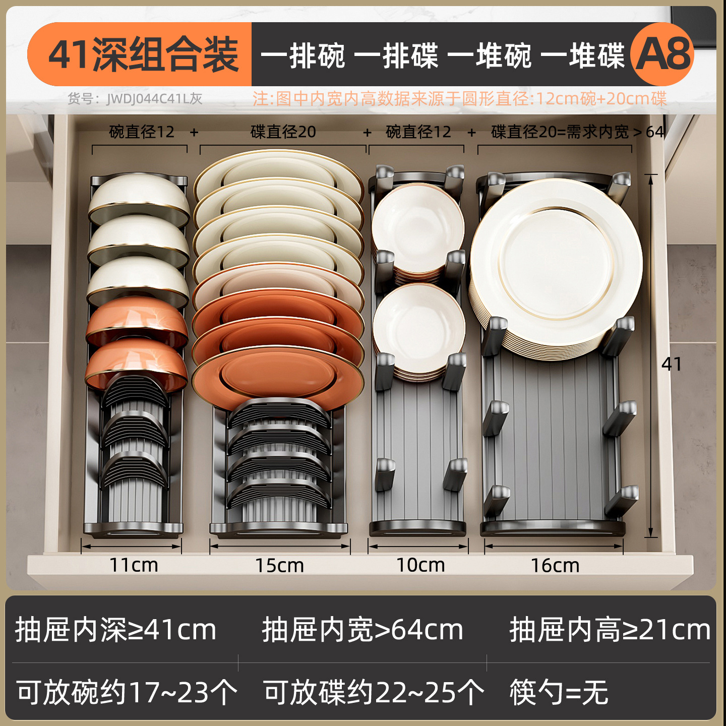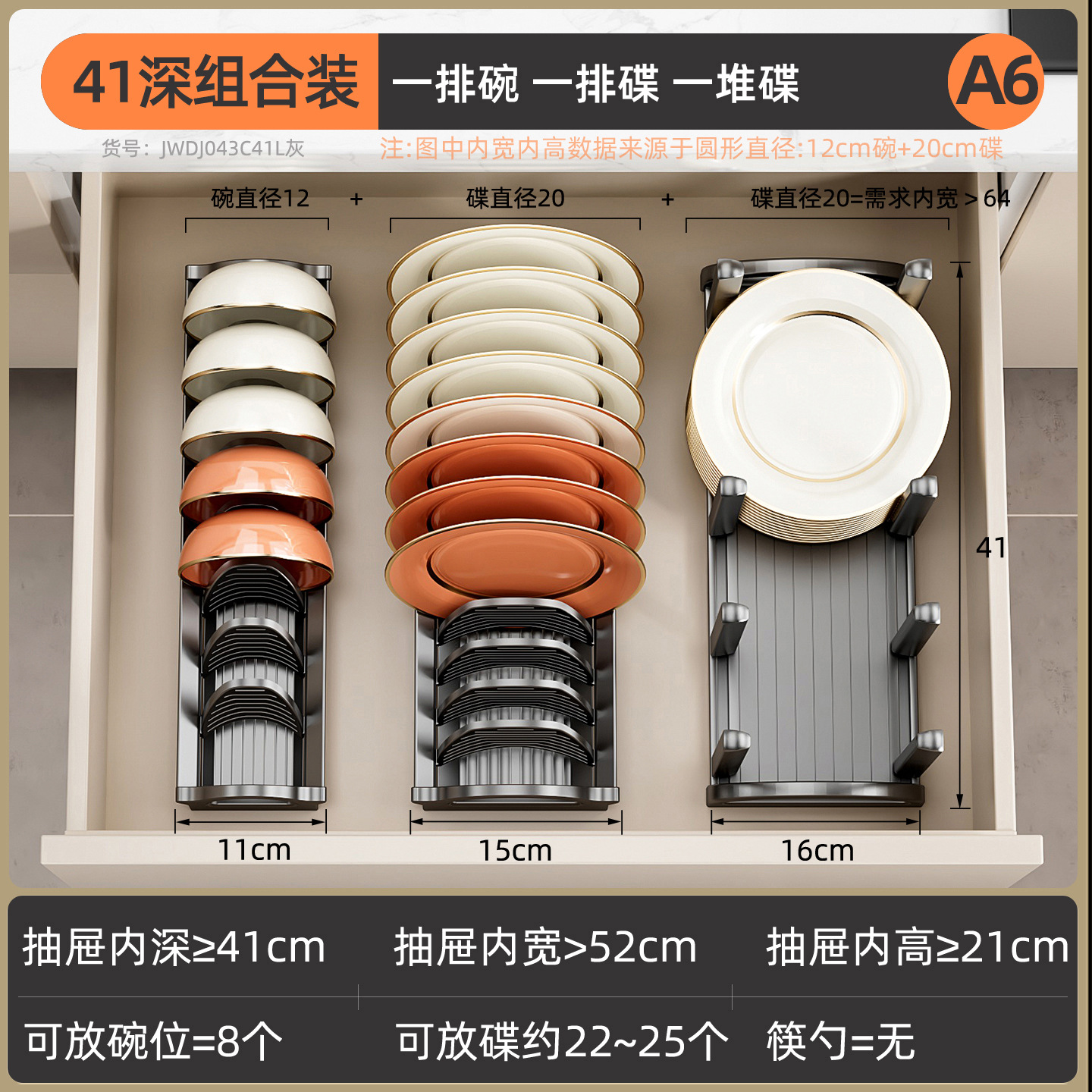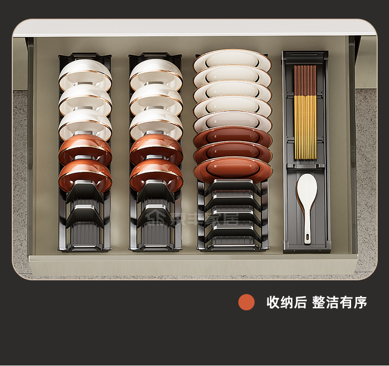 Shu Feng 주방 접시 보관 랙 드레인 접시 랙 찬장 서랍 내장 젓가락 및 숟가락 접시 저장 랙 파티션스토어 가기