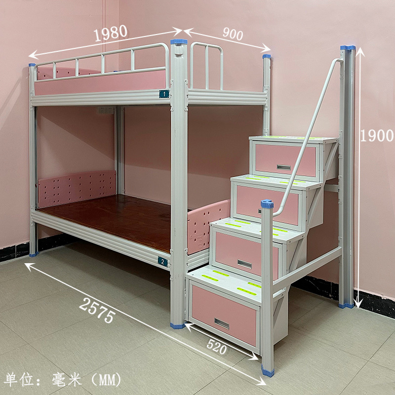학생들은 침대 연철 플라스틱 침대 옆 높이 같은 폭 4 인 결합 된 계단 사다리 더블 사다리 캐비닛 더블 기숙사 침대를 타고 내립니다.스토어 가기