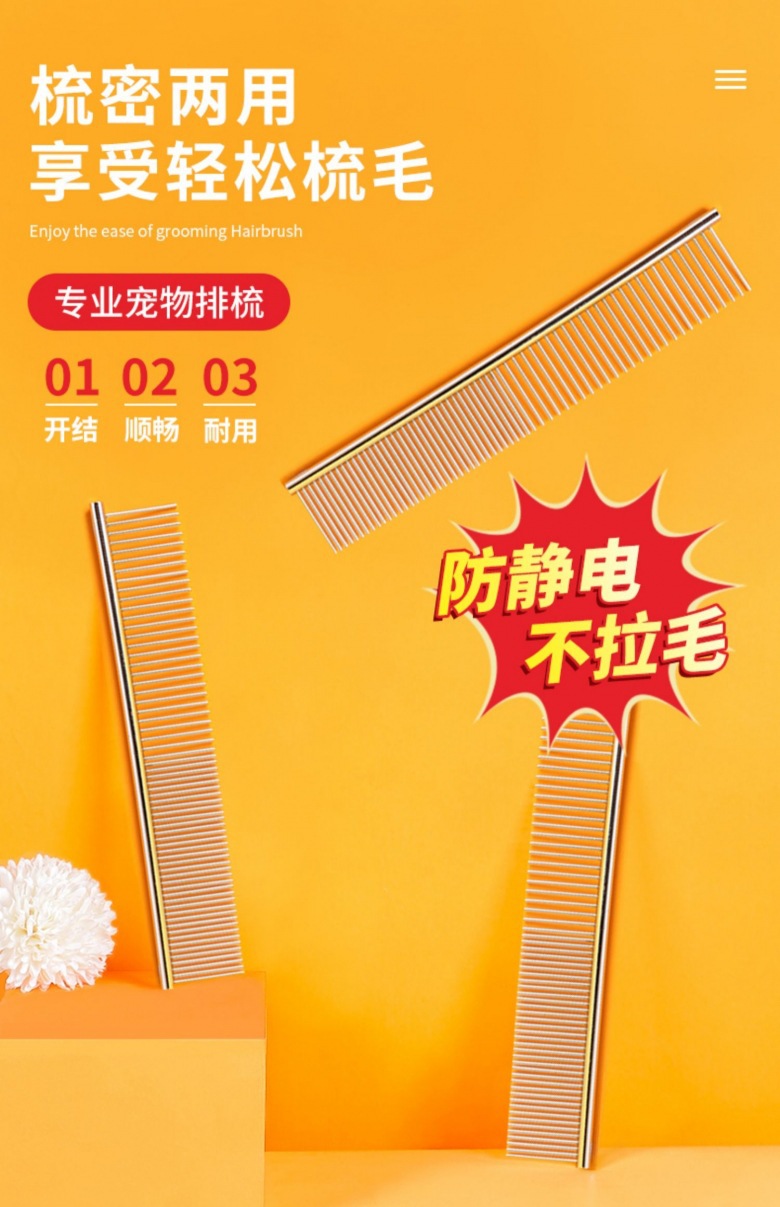 긴 머리 애완 동물 빗 뷰티 빗 개 고양이 강철 빗 조밀 한 두 배 이빨 빗 오픈 매듭 헤어 빗 애완 동물 용품스토어 가기