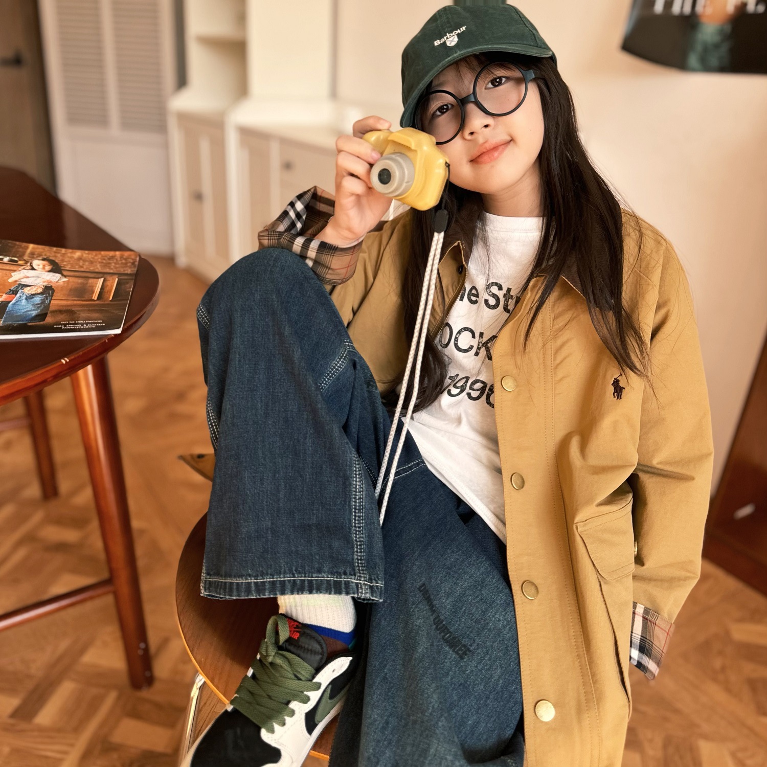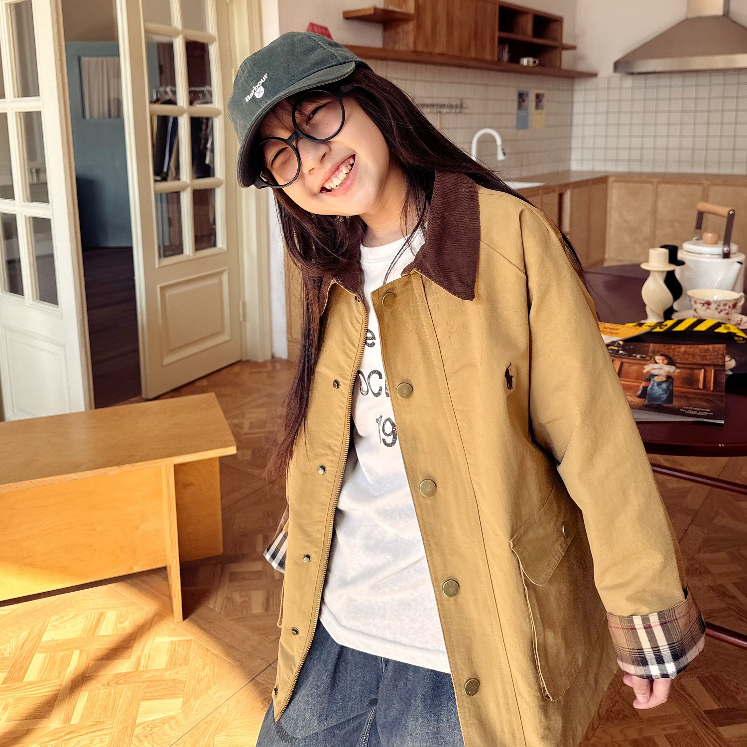 2025 가을 겨울 일본식 아동 복고풍 올드 머니 스타일 루즈 라펠 재킷 소년 소녀 재고 있음