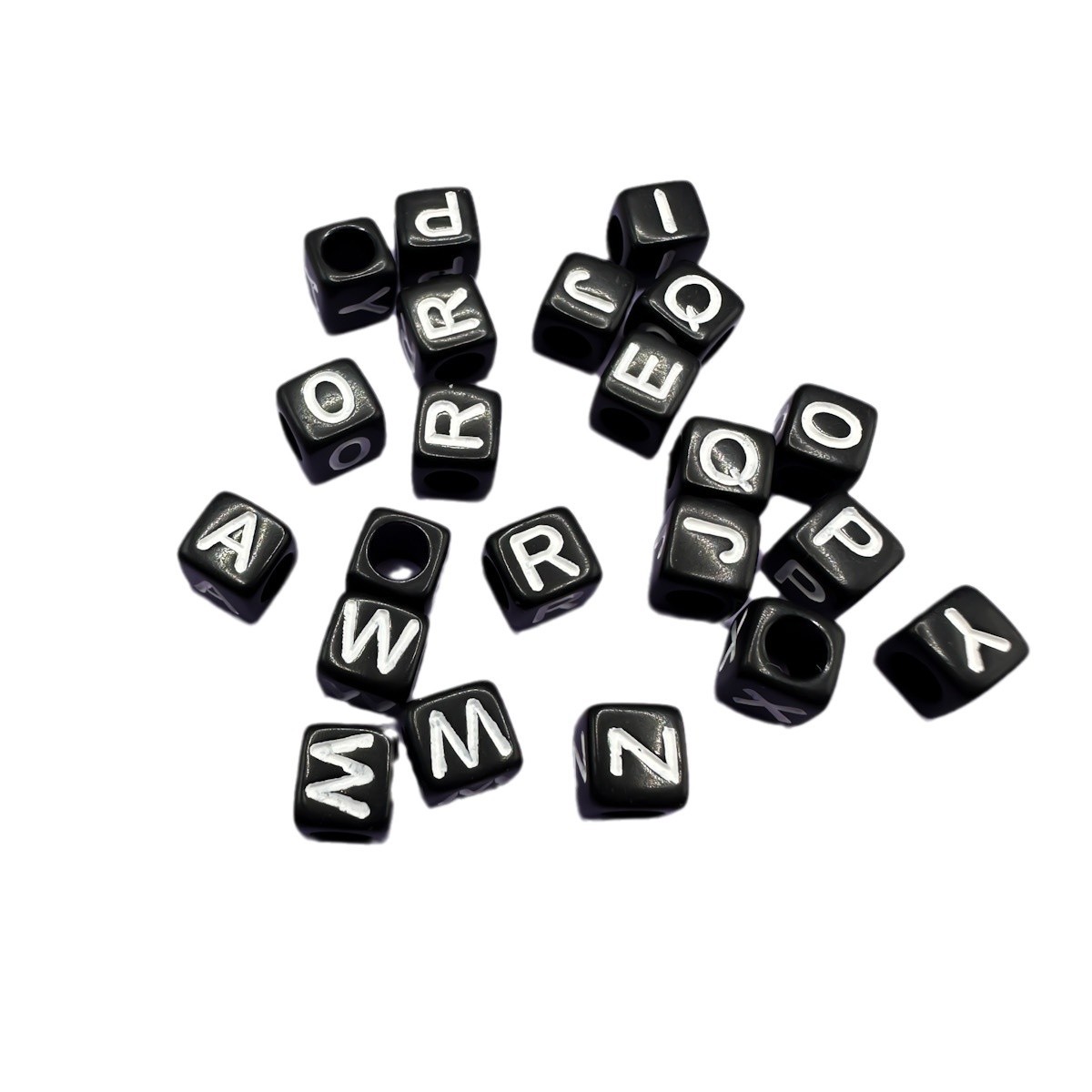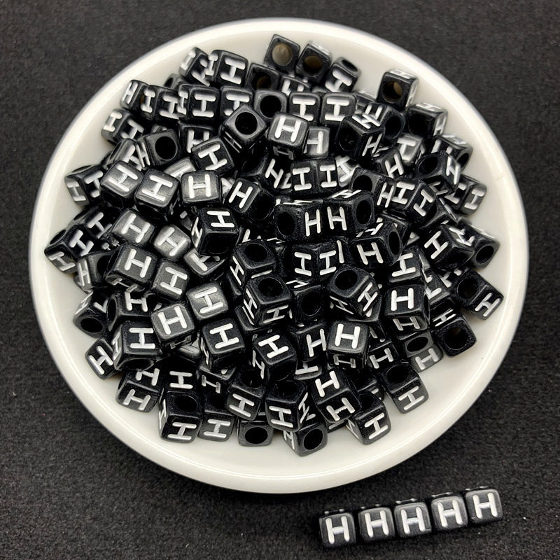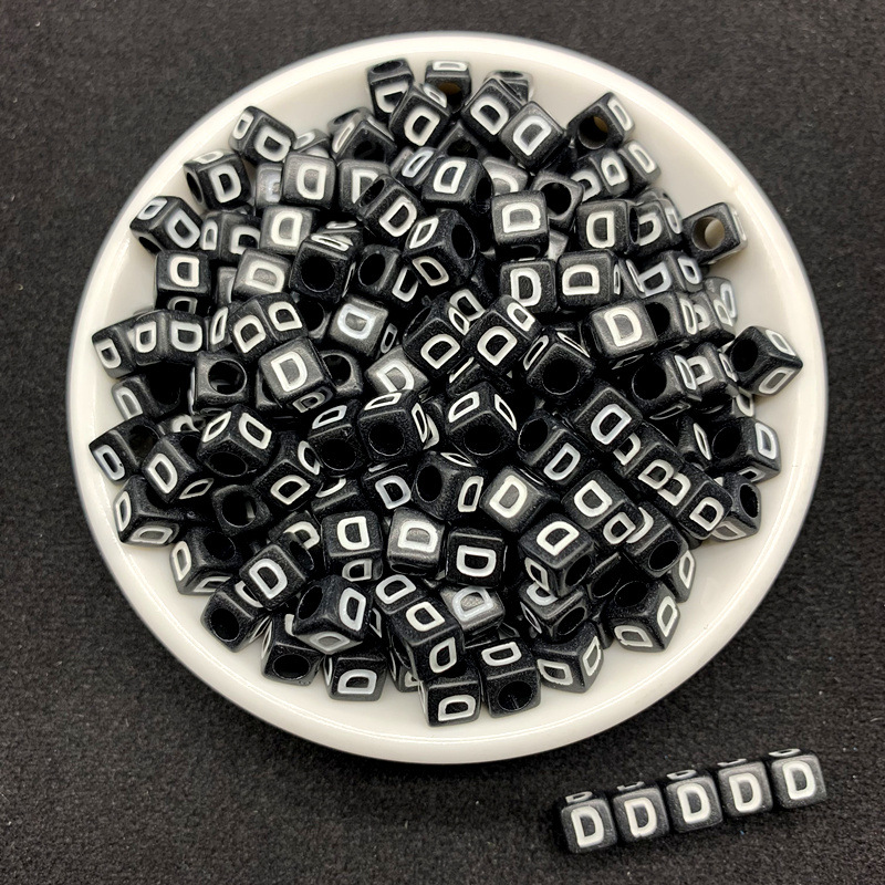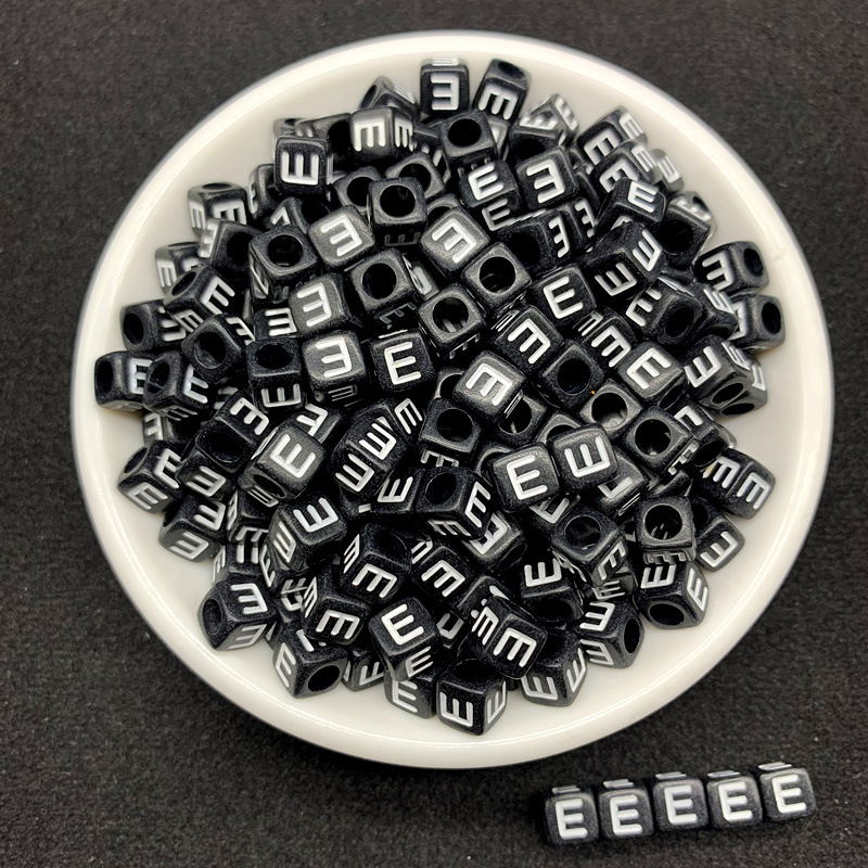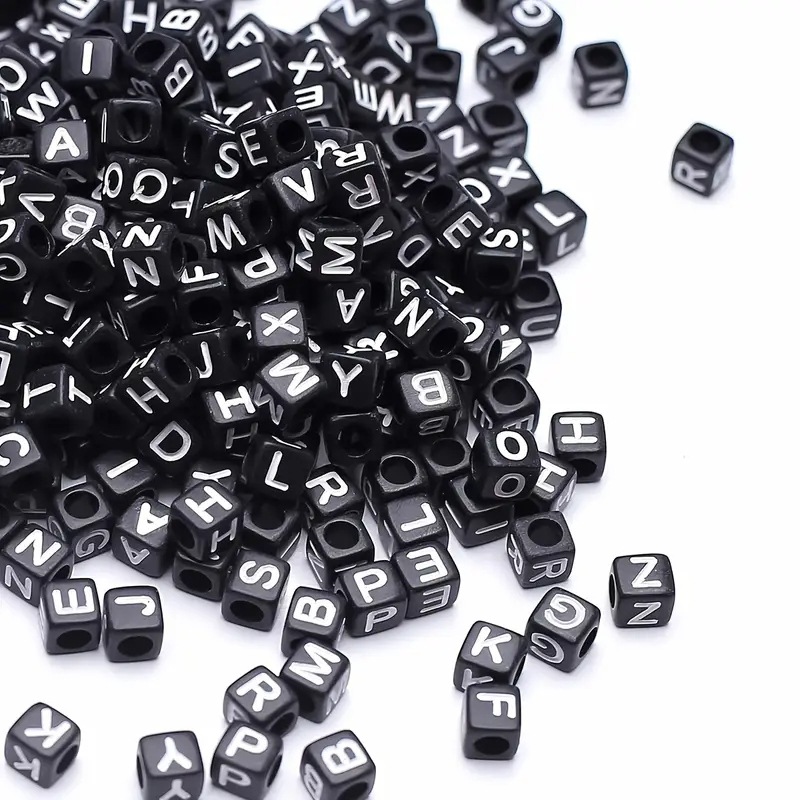 아크릴 검정색 배경 흰색 사각형 문자 비즈 26 영어 단일 문자 diy 쥬얼리 비즈 액세서리 루즈 비즈 소재스토어 가기