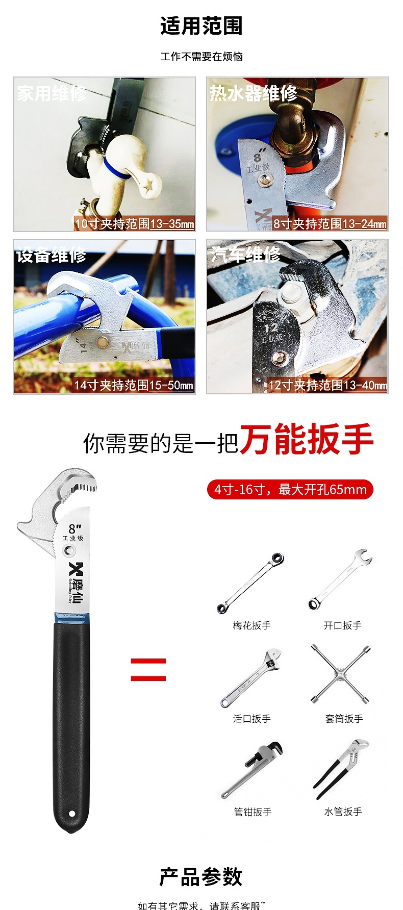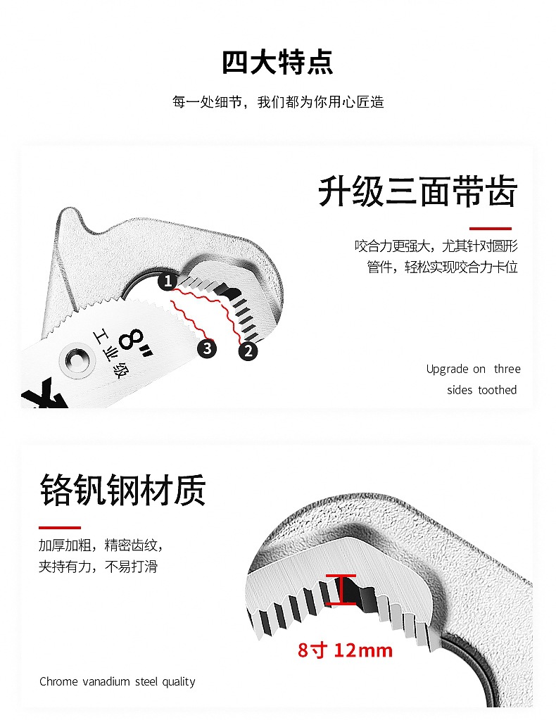 Moxian 다기능 조절 가능한 렌치 범용 렌치 빠른 자체 잠금 조절 가능한 렌치 수도관 렌치 범용 렌치