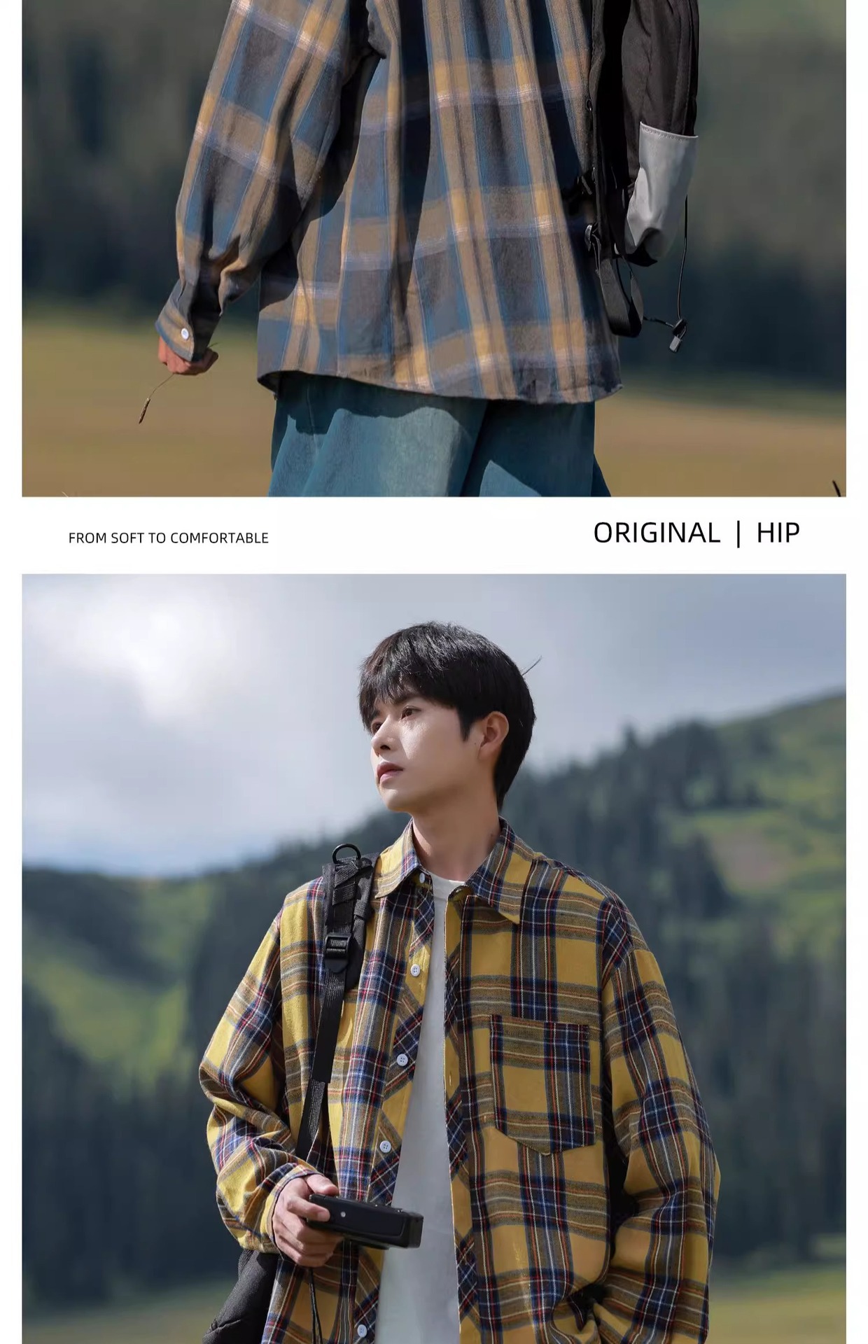 NASA 일본 레트로 긴 소매 셔츠 남자의 봄과 가을 2025 새로운 패션 브랜드 느슨한 캐주얼 격자 무늬 셔츠 재킷