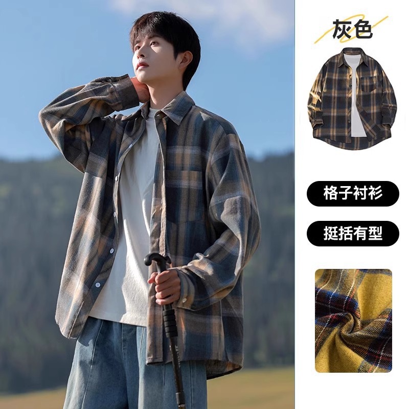 NASA 일본 레트로 긴 소매 셔츠 남자의 봄과 가을 2025 새로운 패션 브랜드 느슨한 캐주얼 격자 무늬 셔츠 재킷스토어 가기
