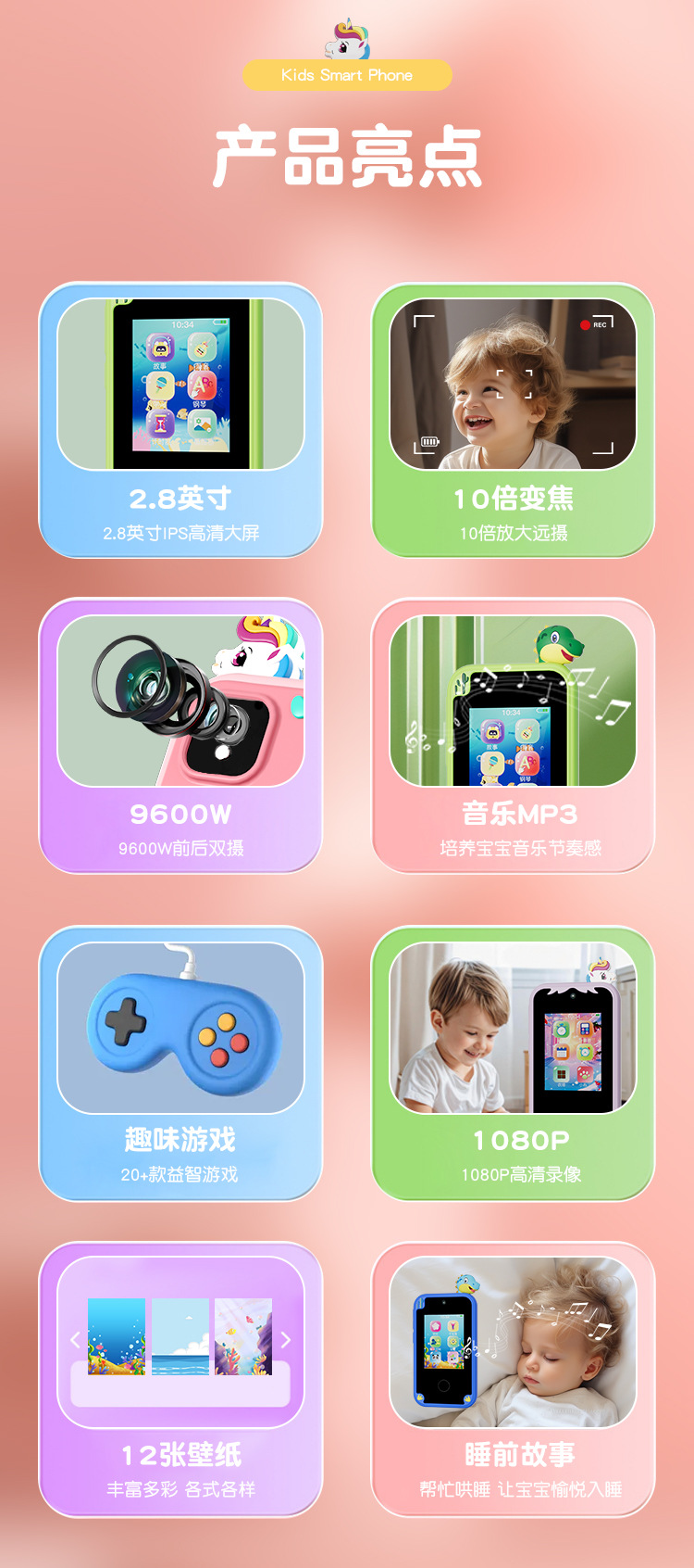 국경을 넘는 신제품 키즈 카메라 어린이용 휴대폰 카메라 유니콘 공룡 고화질 사진 및 비디오 촬영