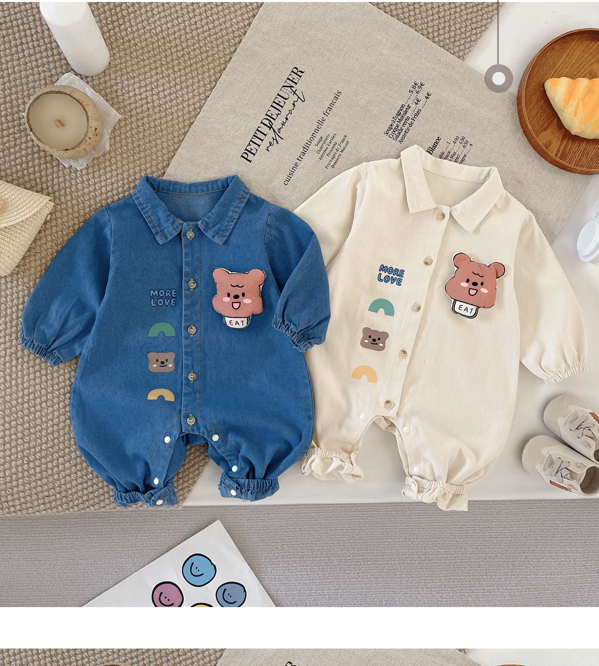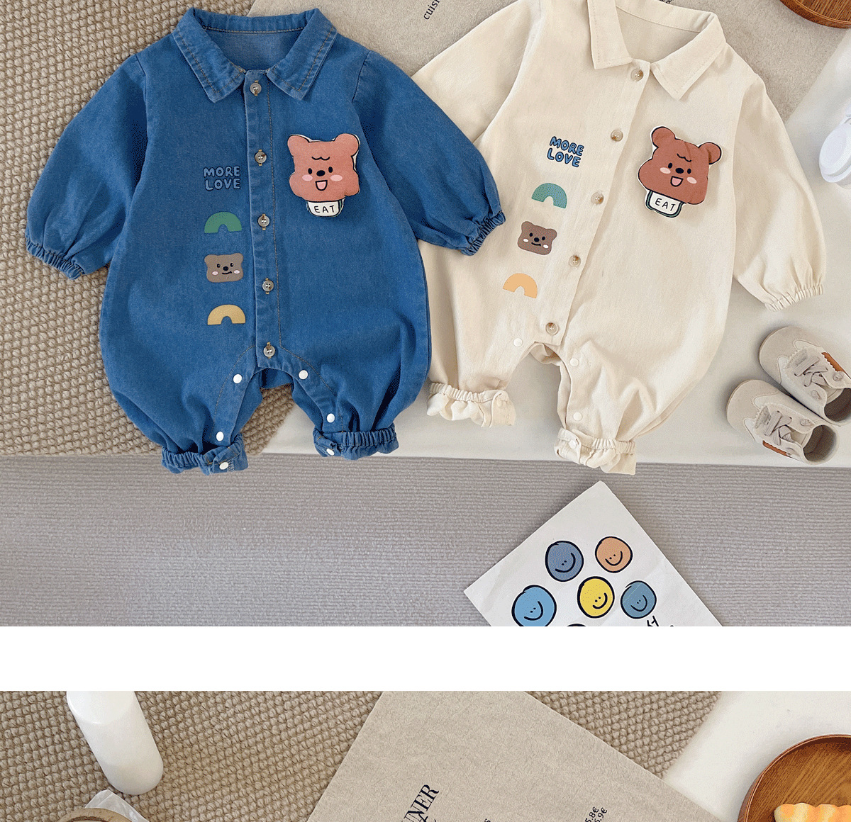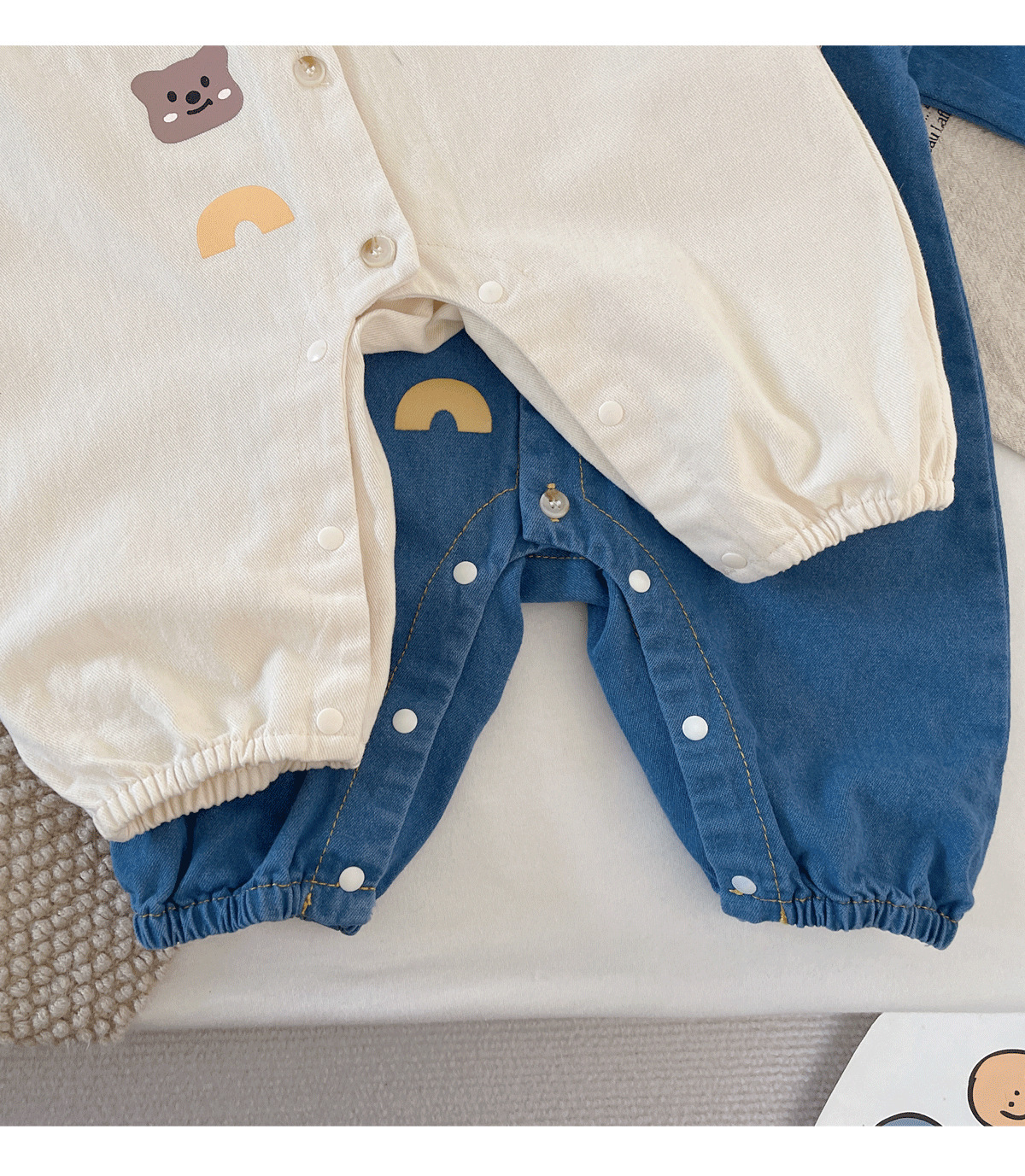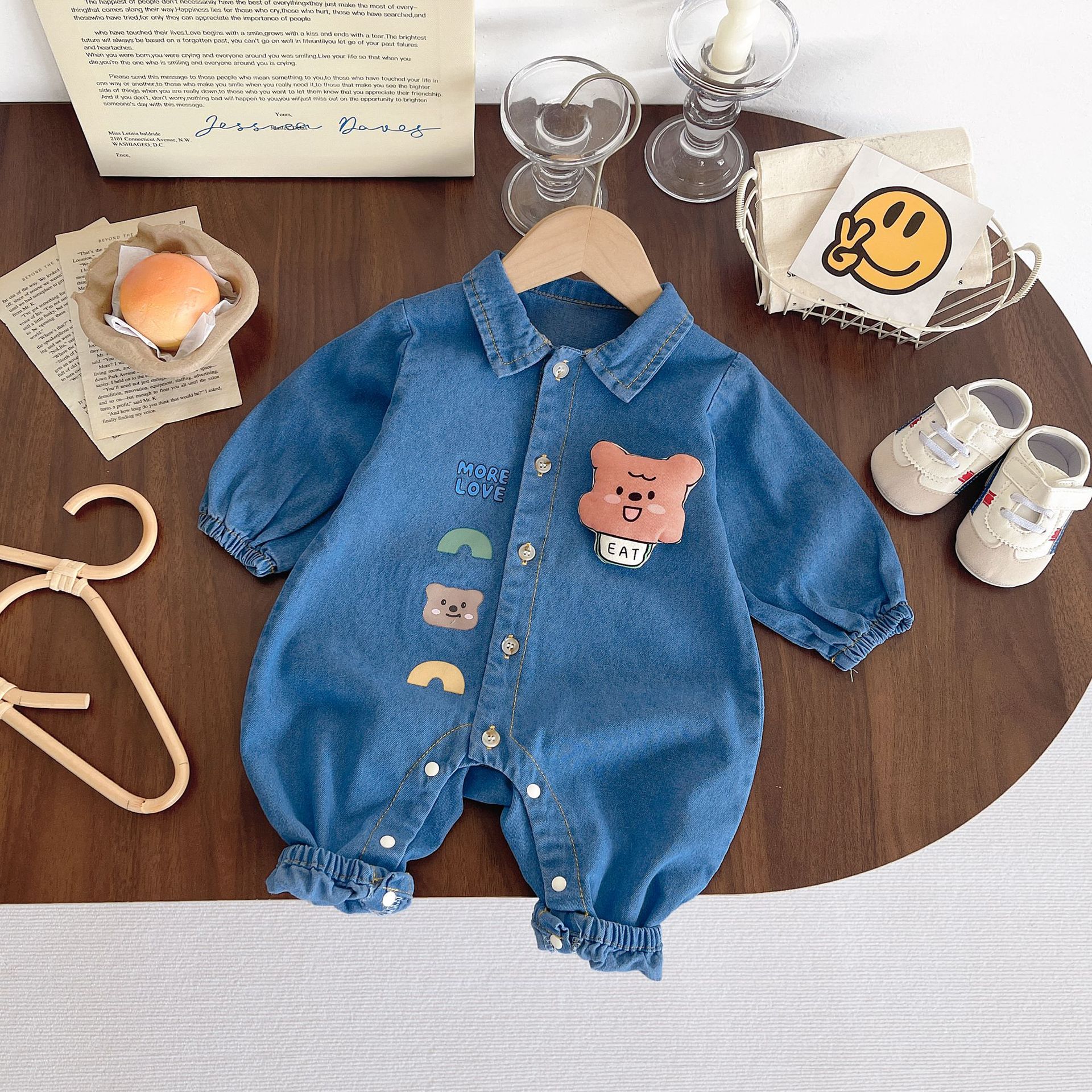아기 Ins 데님 점프 수트 0-2 년 된 봄과 가을 한국 어린이 착용 아기 슈퍼 귀여운 만화 옷 아기 가을 착용스토어 가기