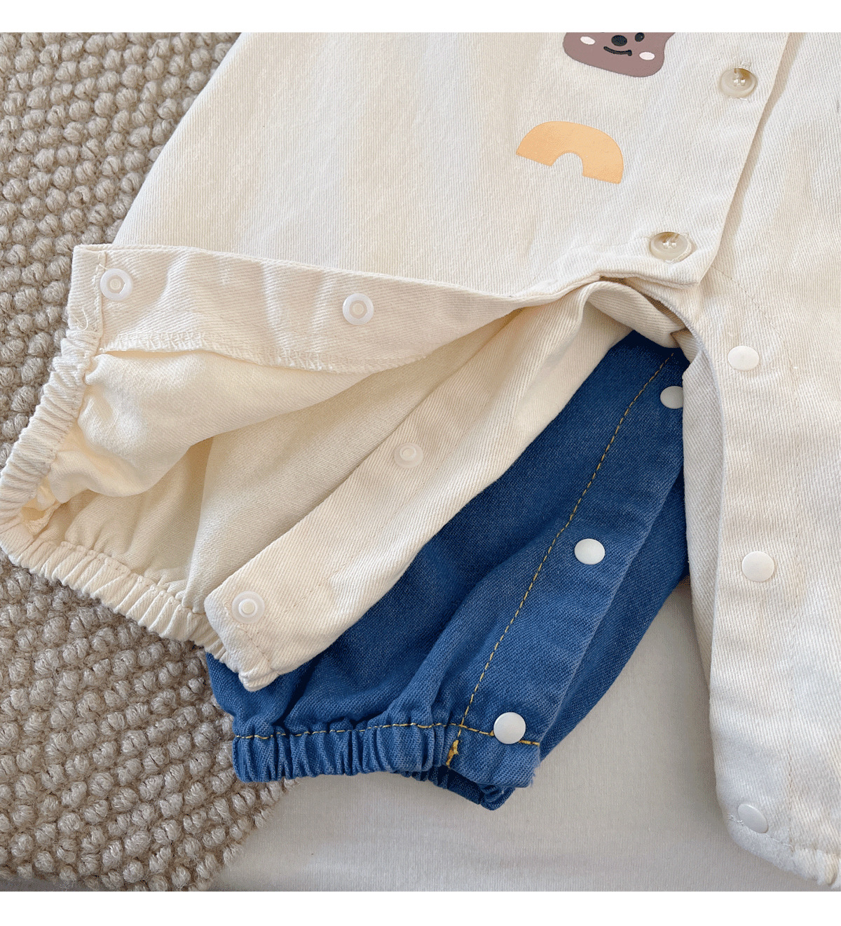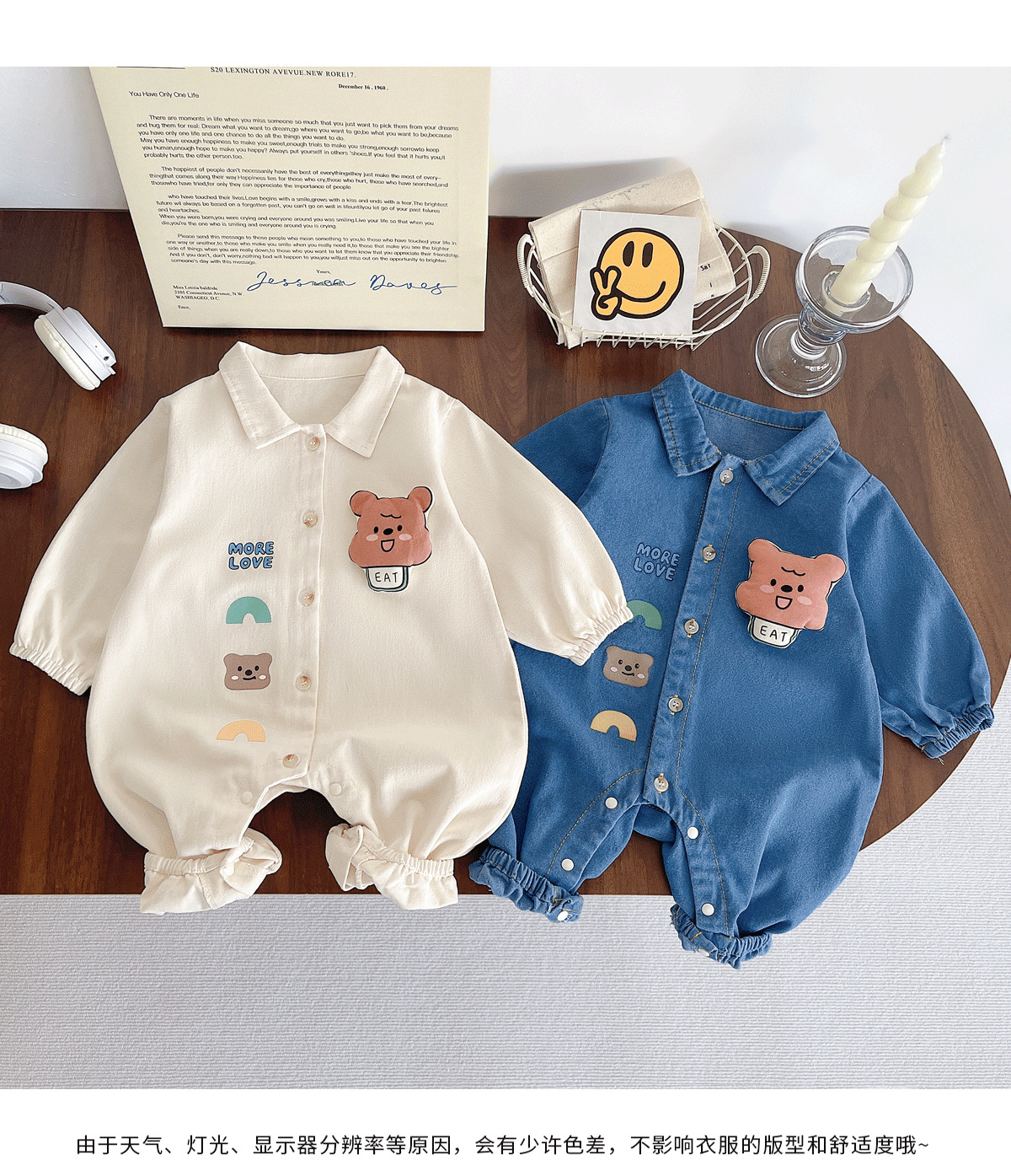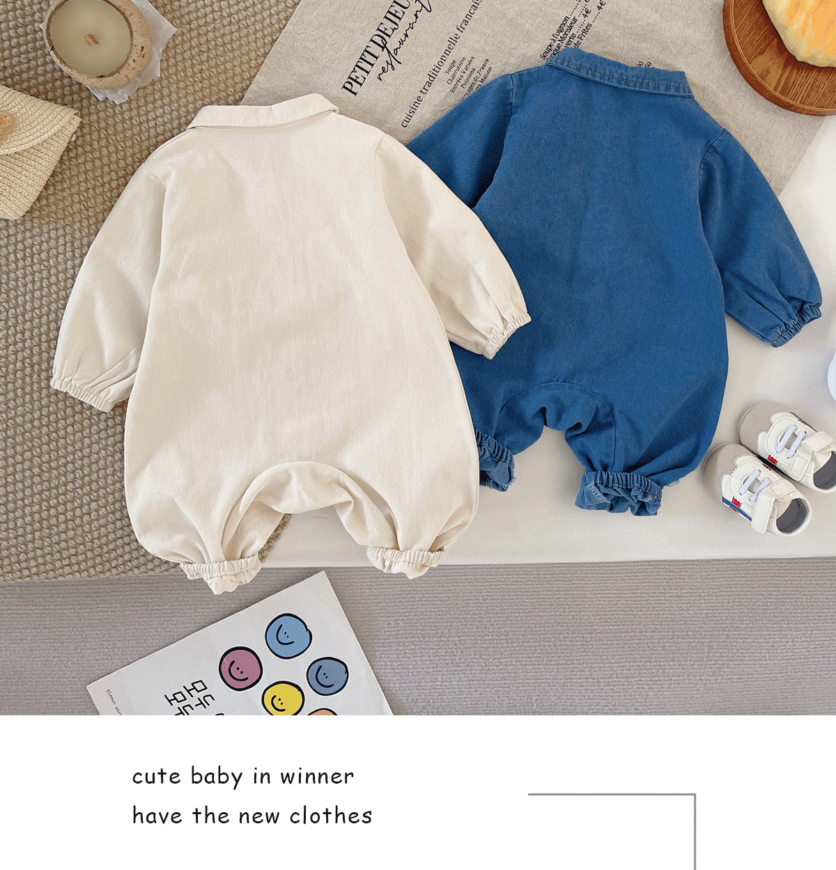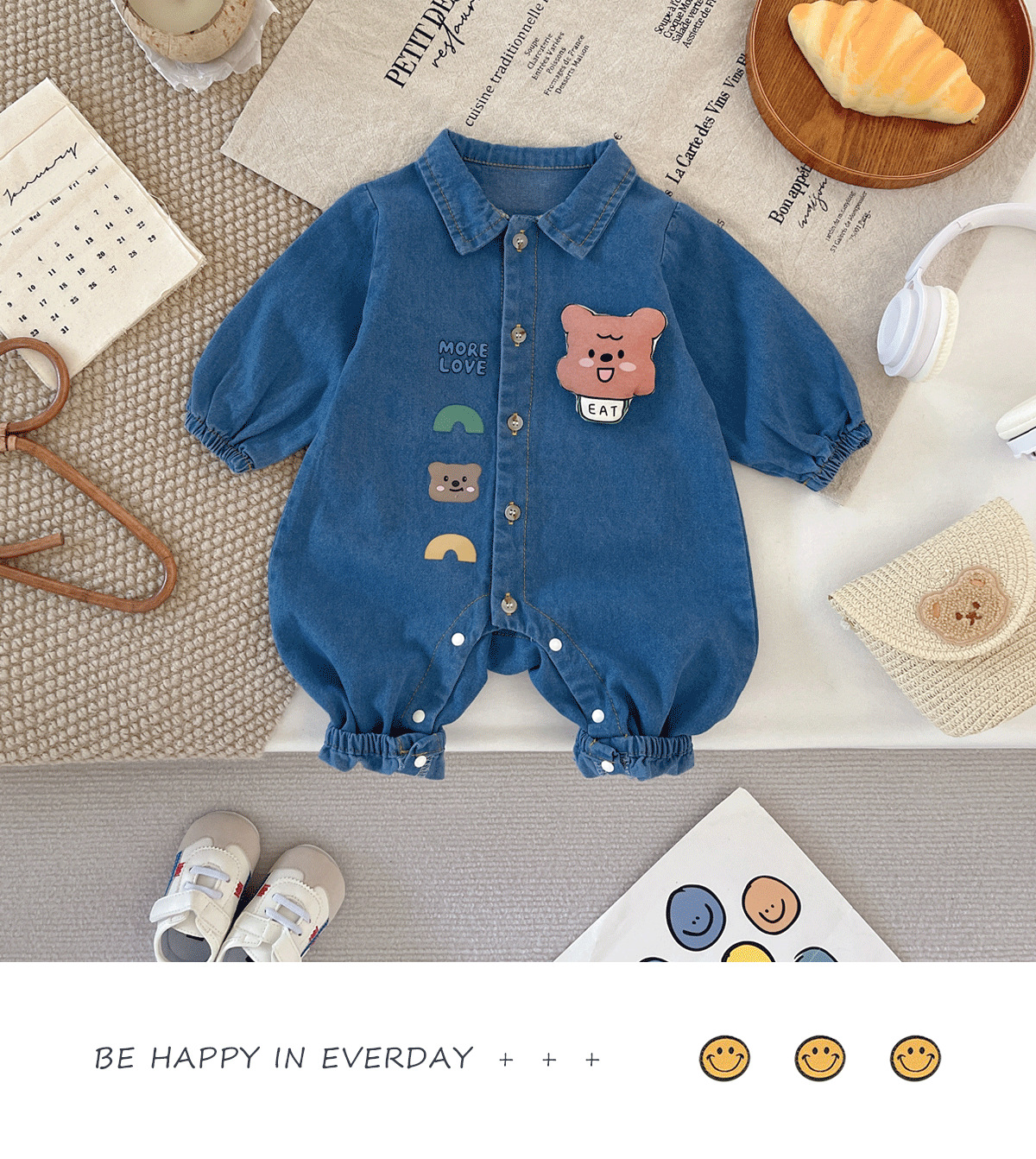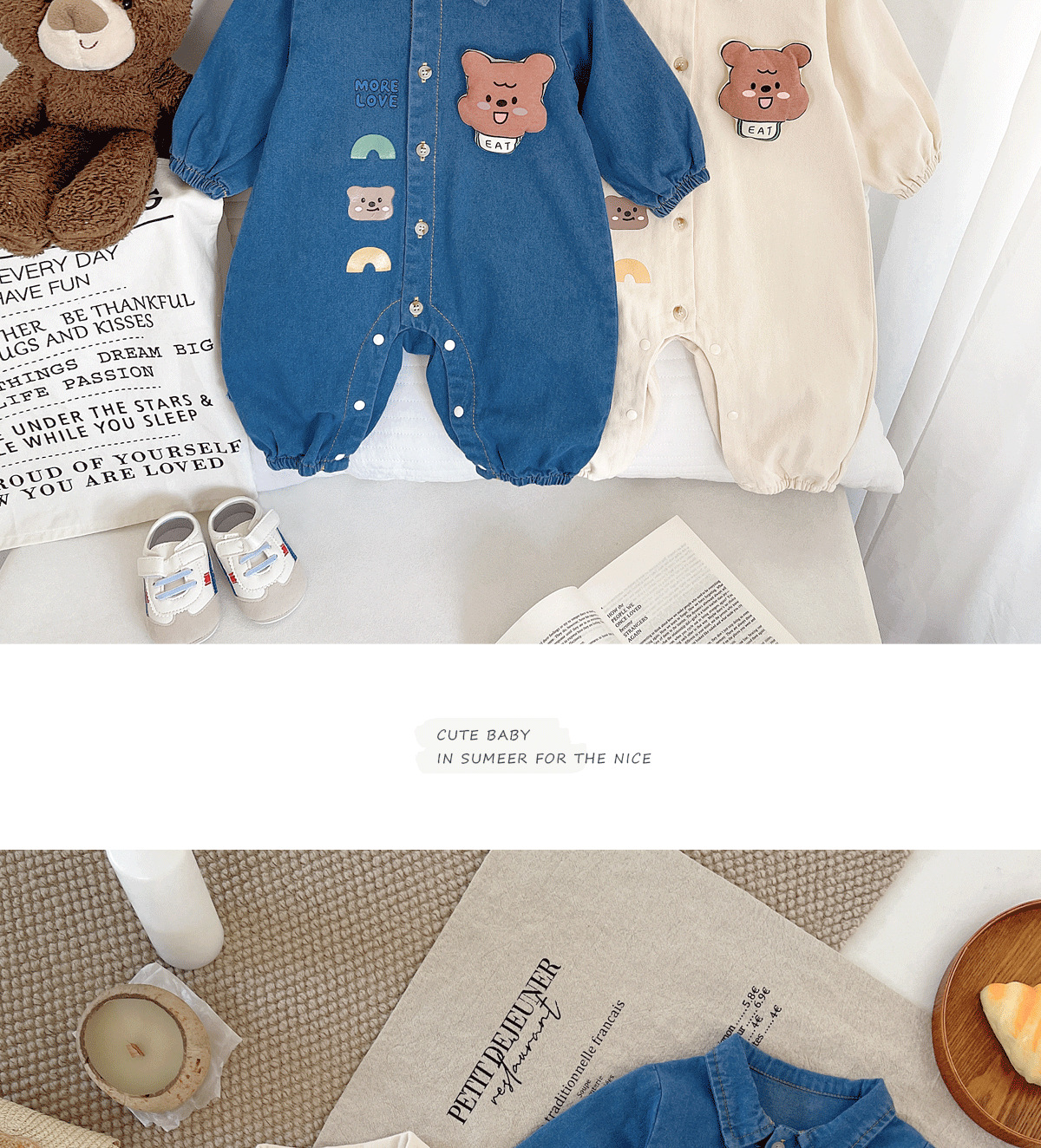 아기 Ins 데님 점프 수트 0-2 년 된 봄과 가을 한국 어린이 착용 아기 슈퍼 귀여운 만화 옷 아기 가을 착용스토어 가기