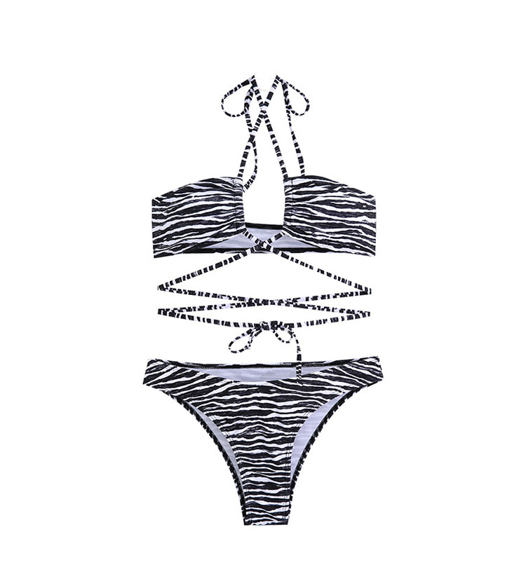 Cross Border Zebra Striped Sexy Backless Bikini Sexy Backless Strap Cross Gather Tight Split 수영복