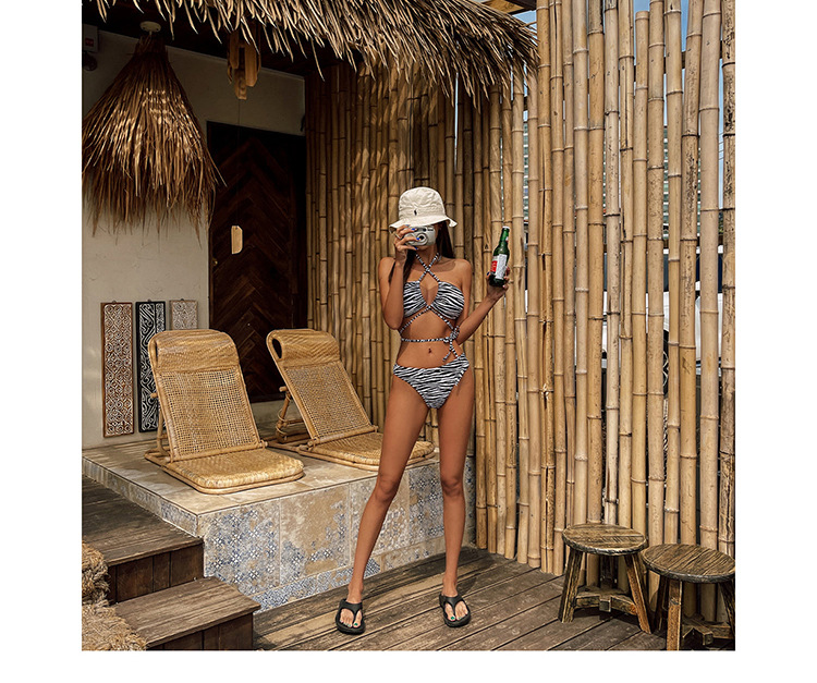 Cross Border Zebra Striped Sexy Backless Bikini Sexy Backless Strap Cross Gather Tight Split 수영복스토어 가기