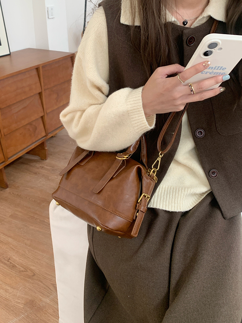 올 매치 휴대용 볼링 가방 여성의 2024 가을과 겨울 새로운 빈티지 패션 베개 가방 통근 어깨 메신저 가방