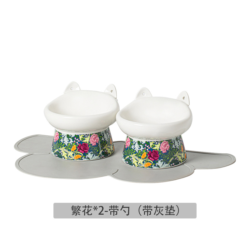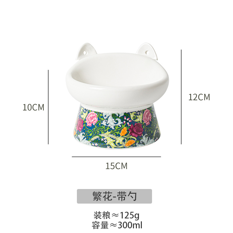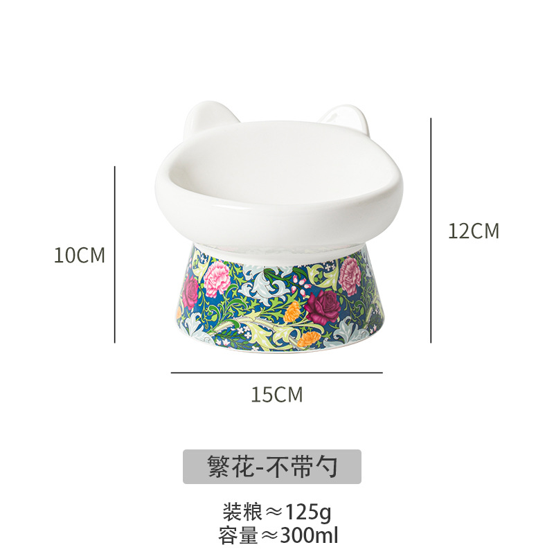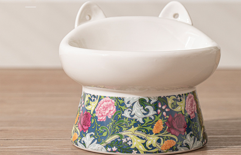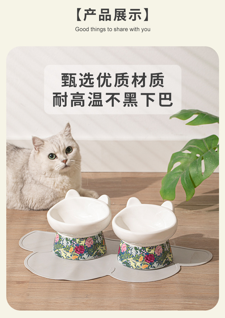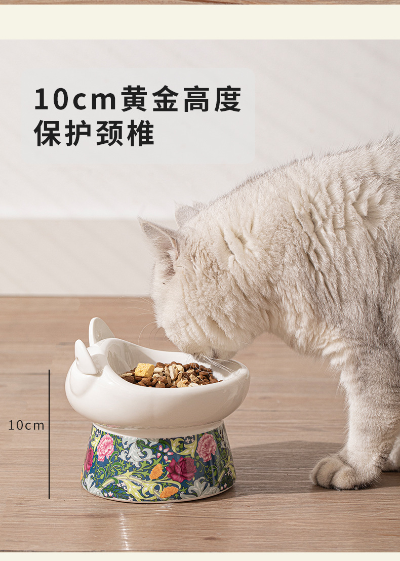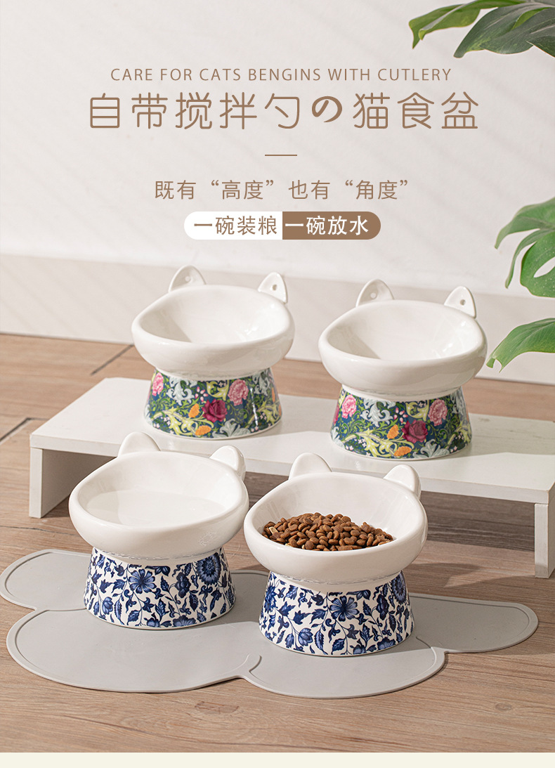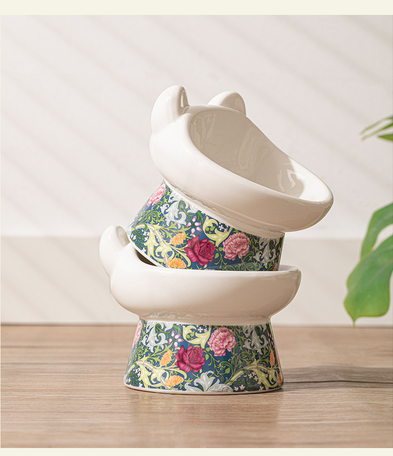 고양이 그릇 세라믹 높은 발 안티 노크 검은 턱 고양이 음식 분지 개 고양이 마시는 물과 먹는 애완 동물 그릇