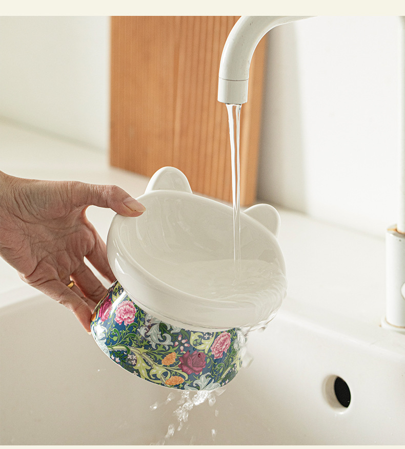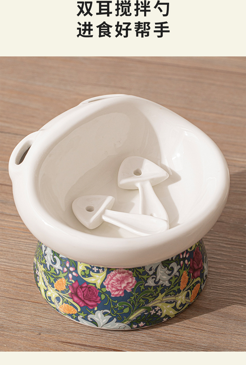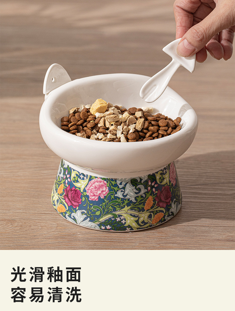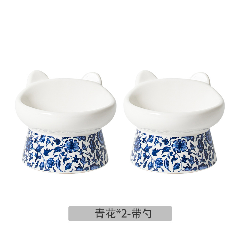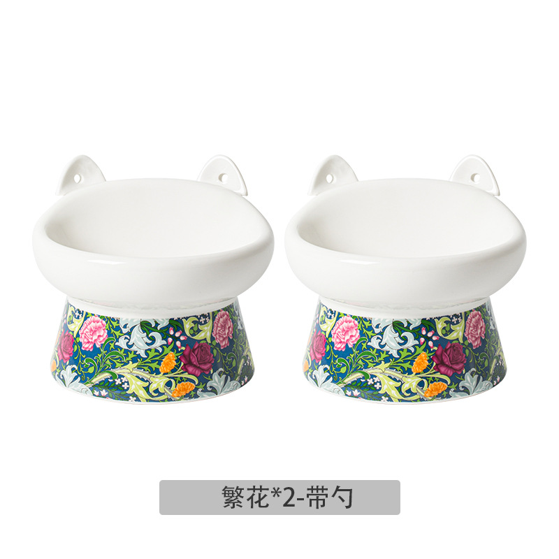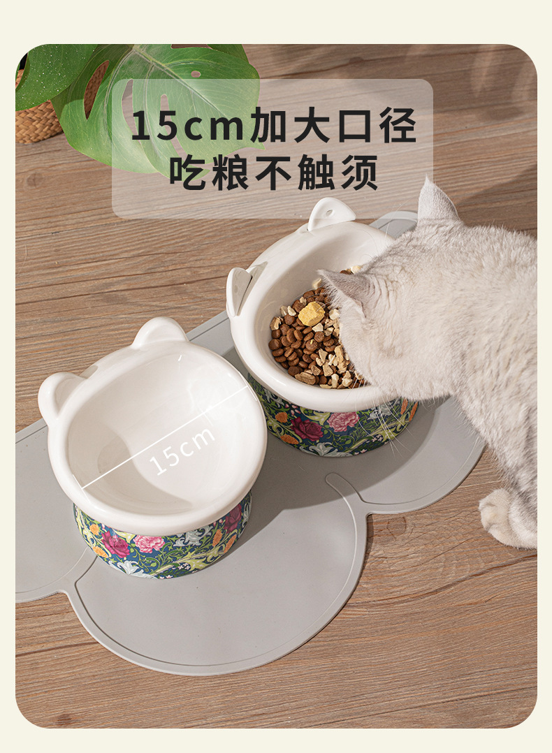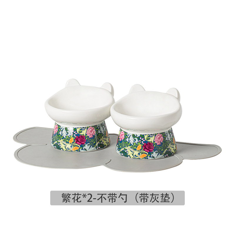 고양이 그릇 세라믹 높은 발 안티 노크 검은 턱 고양이 음식 분지 개 고양이 마시는 물과 먹는 애완 동물 그릇