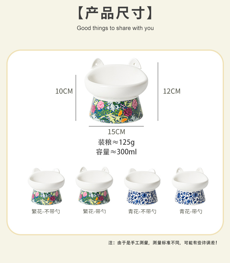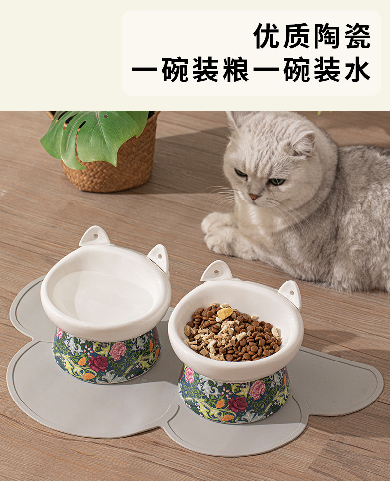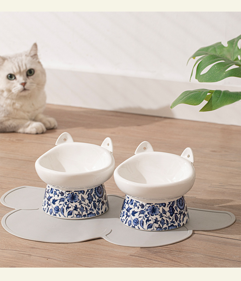 고양이 그릇 세라믹 높은 발 안티 노크 검은 턱 고양이 음식 분지 개 고양이 마시는 물과 먹는 애완 동물 그릇스토어 가기