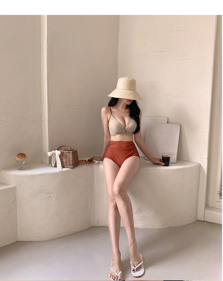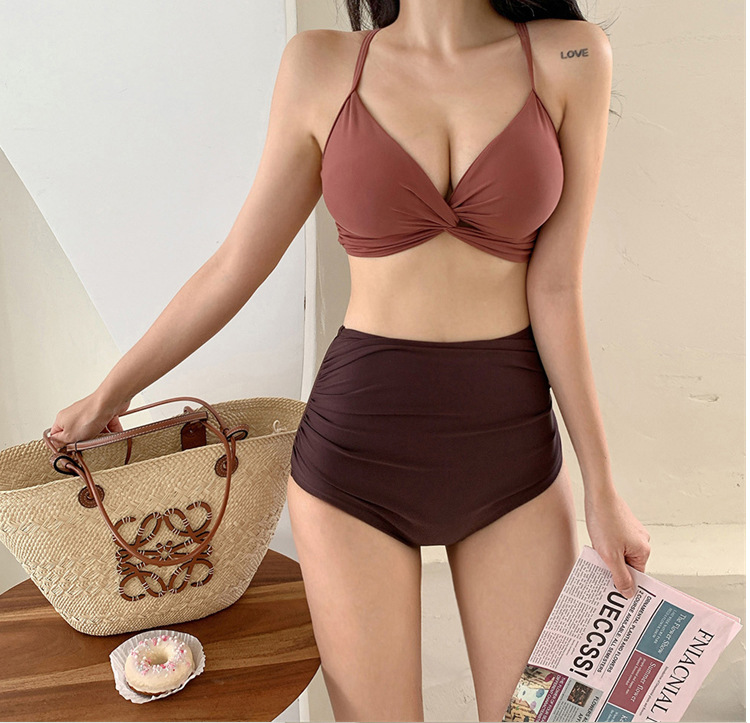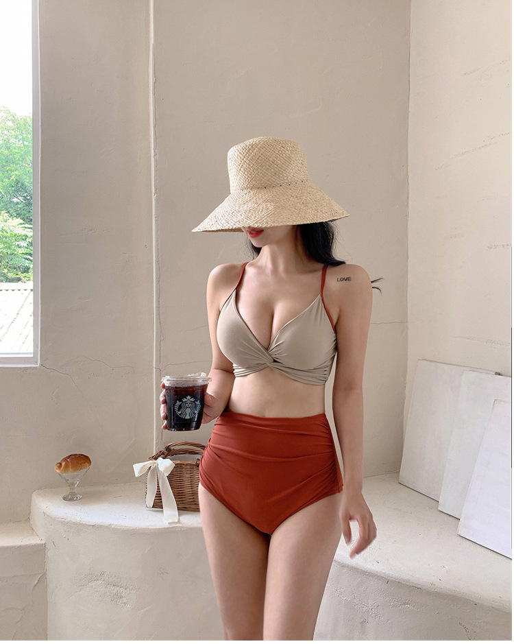 2025 새로운 수영복 여성 스플릿 투피스 섹시한 슬림 배꼽 커버 순수 인 스타일 비키니 수영복 도매스토어 가기