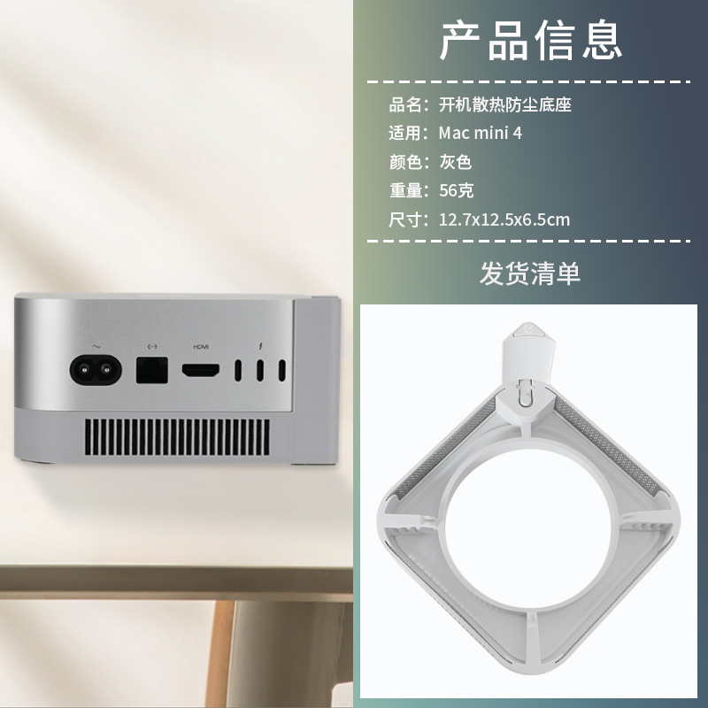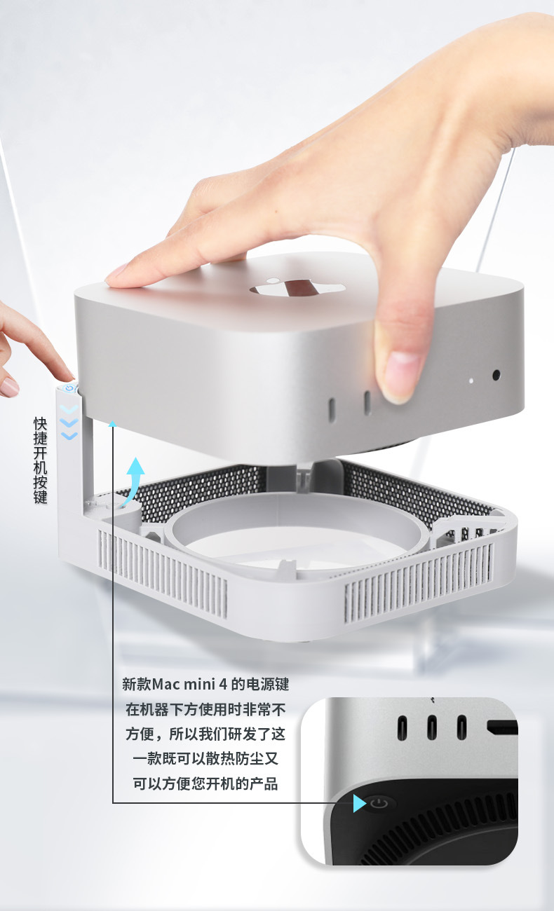 파워 온 키 방열 방진 베이스 고조 브래킷은 Apple mac mini4 M4 컴퓨터 호스트 데스크톱에 적합합니다.스토어 가기