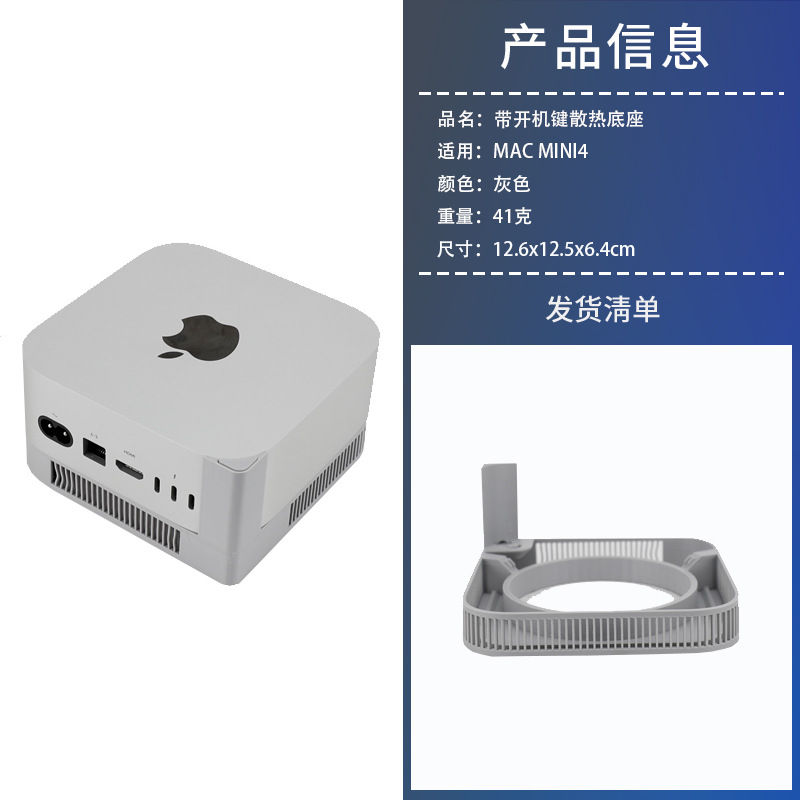 파워 온 키 방열 방진 베이스 고조 브래킷은 Apple mac mini4 M4 컴퓨터 호스트 데스크톱에 적합합니다.