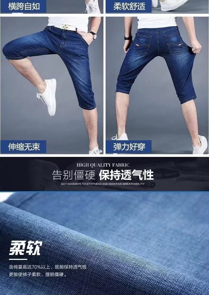 국경 간 얇은 여름 젊고 중년 5 점 플러스 사이즈 데님 반바지 남성 스트레이트 튜브 느슨한 레저 작업 트렌드 도매스토어 가기