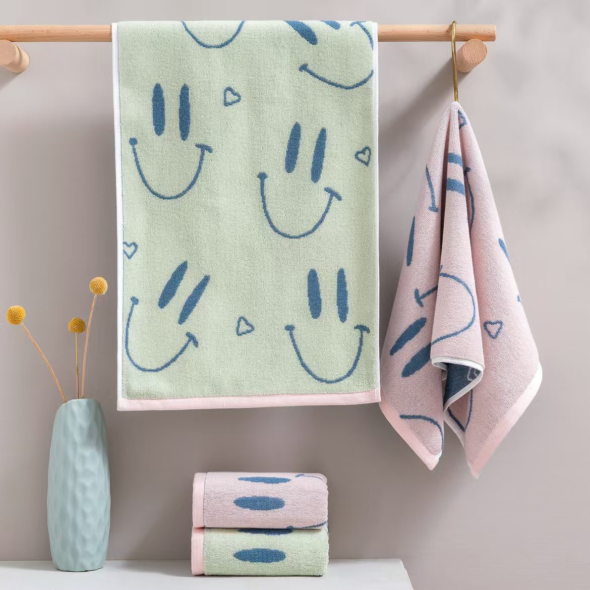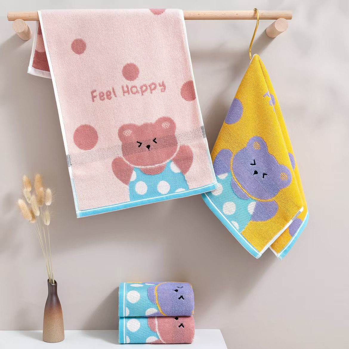 7A 항균 30*60 원사 염색 면화 학생 타월 연약한 흡수성 가정용 페이스 워시 페이스 타월 중형 아동용 타월