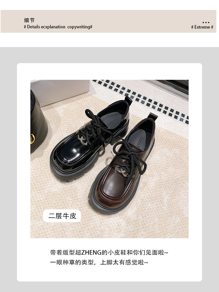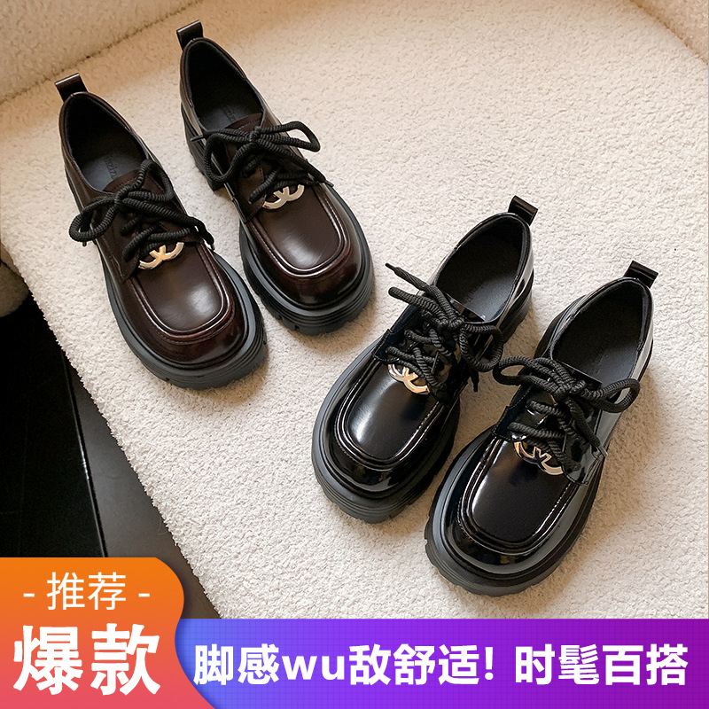 로퍼 여성 2025 새로운 봄과 가을 영국 스타일 두꺼운 단독 증가 검은 작은 가죽 신발 두꺼운 뒤꿈치 레이스 업 신발스토어 가기