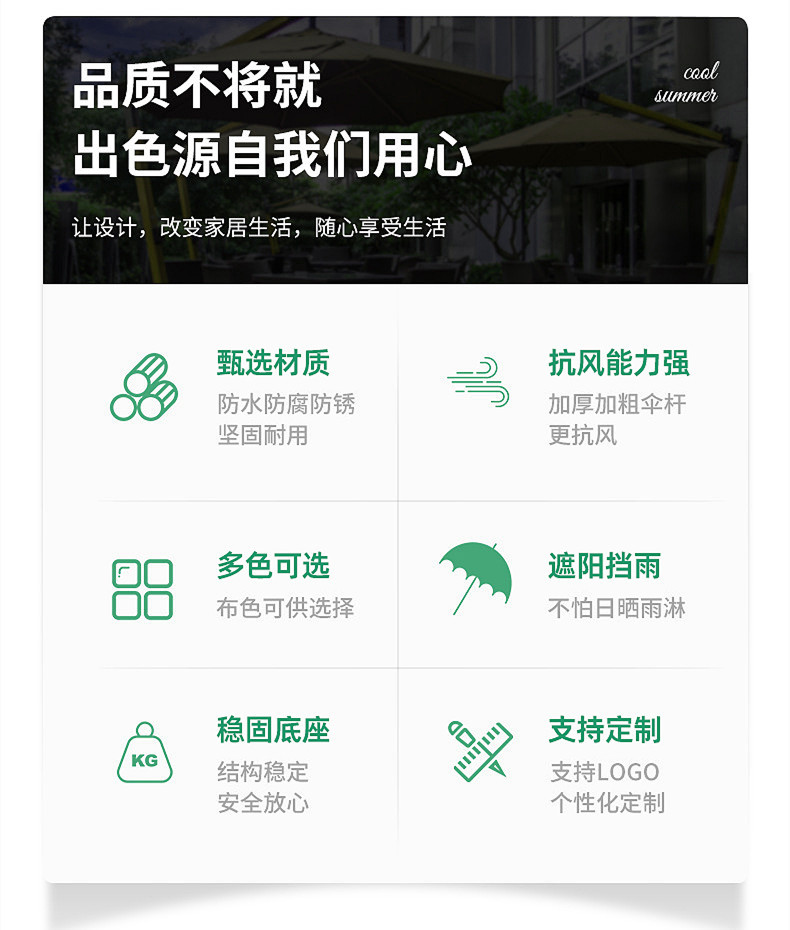 佛山金铖户外用品有限公司是一家专业生产户外休闲遮阳伞、底座、五金等产品的源头工厂,拥有先进专业的生产设备、工艺技术与科学完整的质量管理体系,始终坚持品质如一!能很好的配合具有外贸出口资质的外贸企业提供专业的产品供应与开发服务,与多家龙头企业建立长期稳定友好的合作关系!欢迎各界朋友莅临参观、指导和业务洽谈!