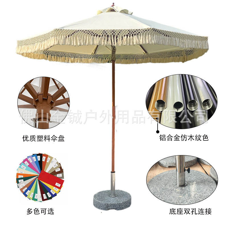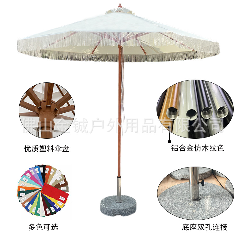 자외선 차단 해변 우산, 수영장 및 정원용 차양, 알루미늄 합금 우산대, 프린지 장식 대형 우산, 방수 및 방우, 야외용스토어 가기
