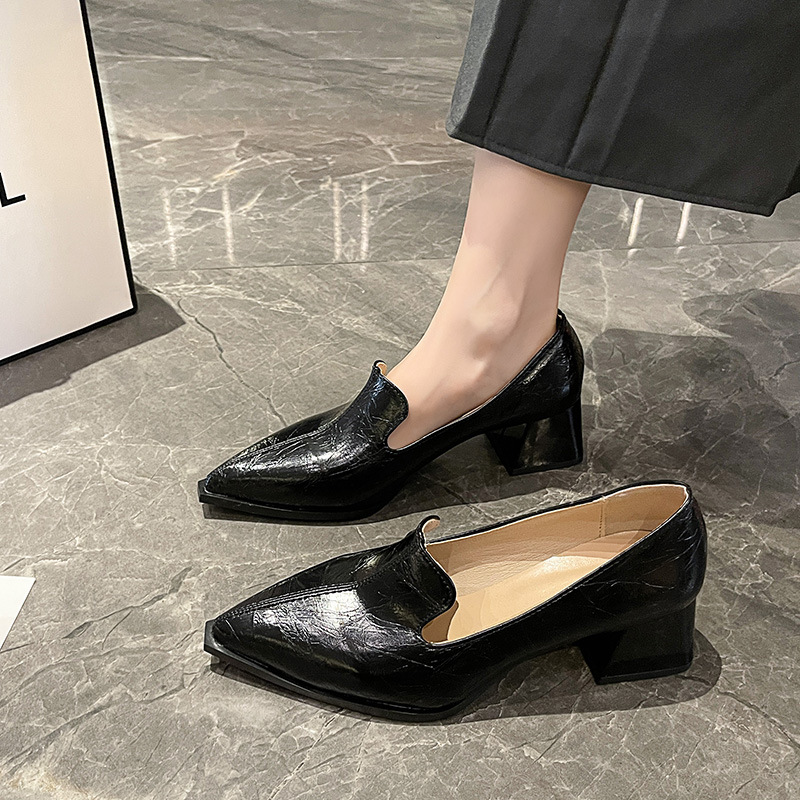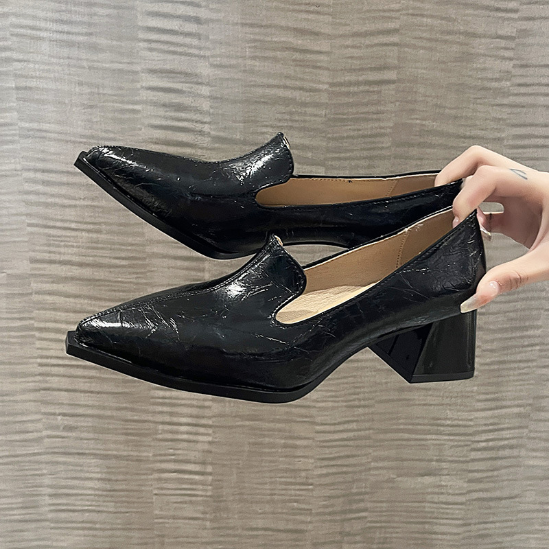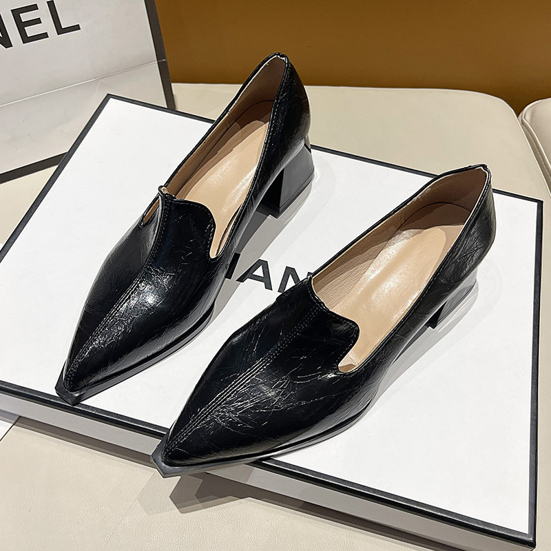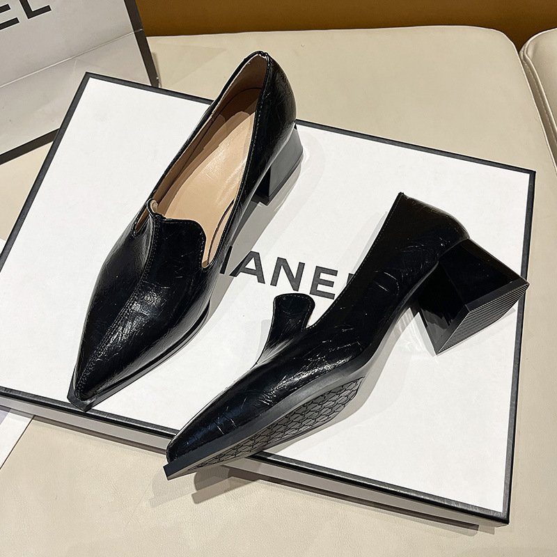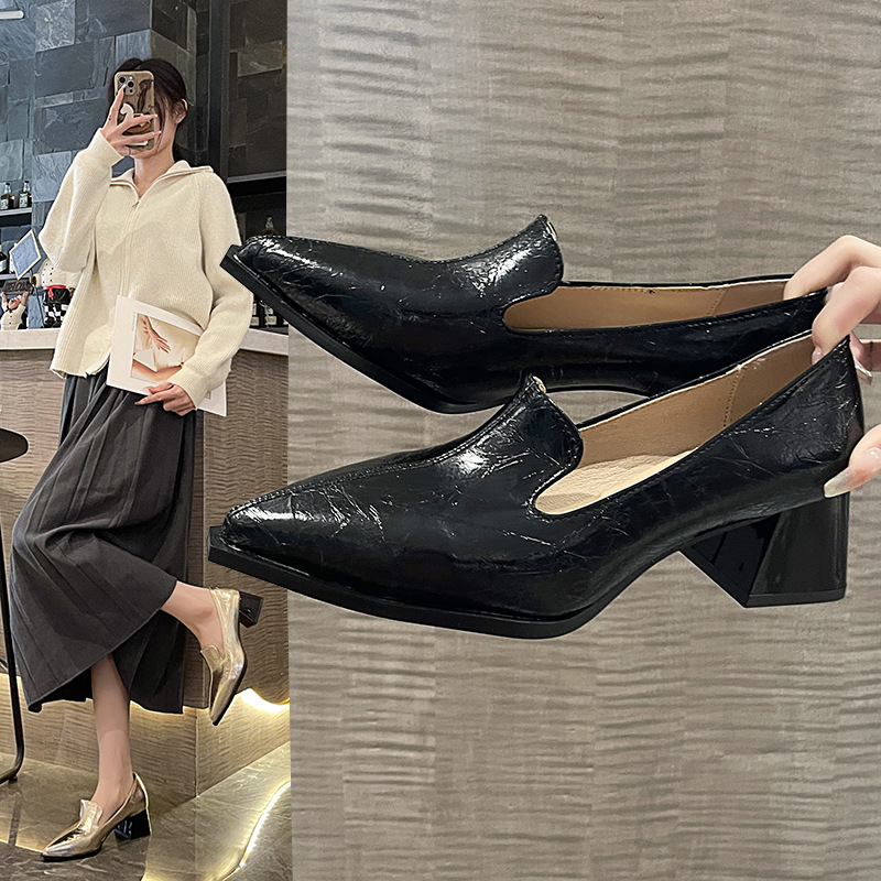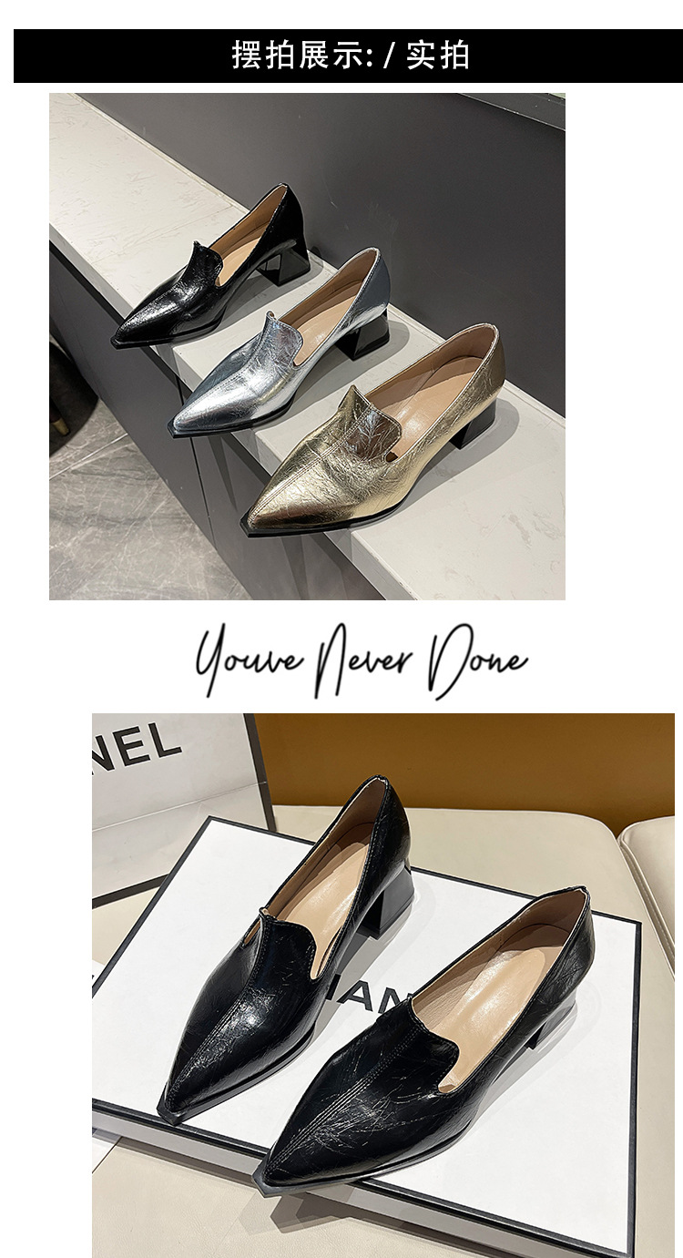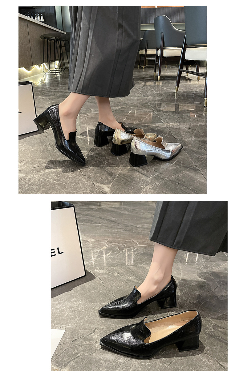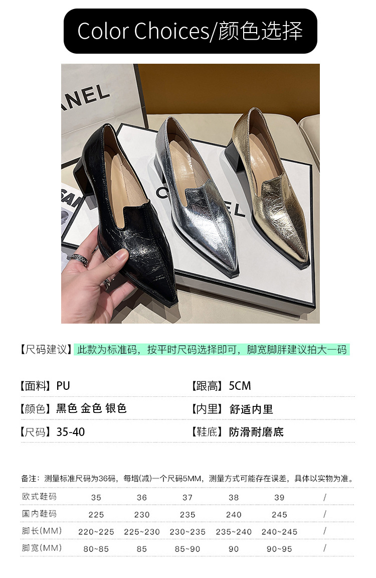 하이힐 2025 봄 새로운 여성 신발 뾰족한 황금 패션 신발 두꺼운 힐 미드 힐 패션 신발 실버 깊은 입 싱글 신발스토어 가기