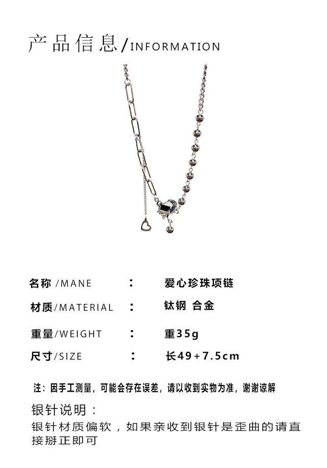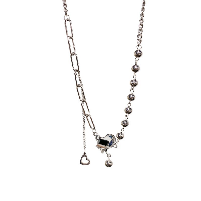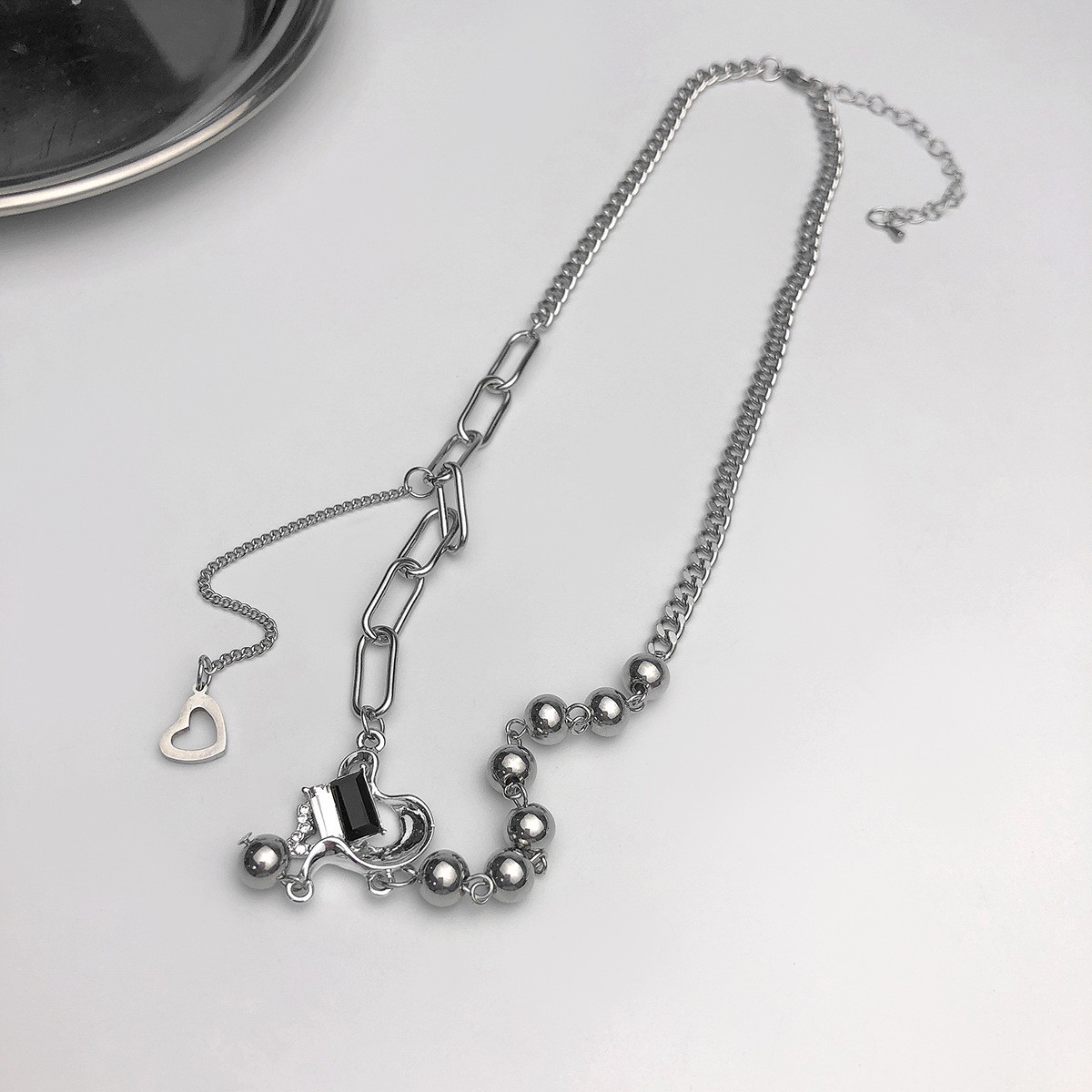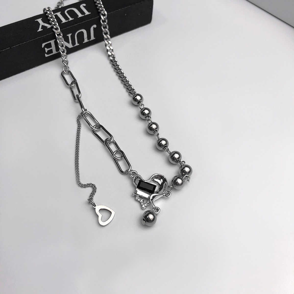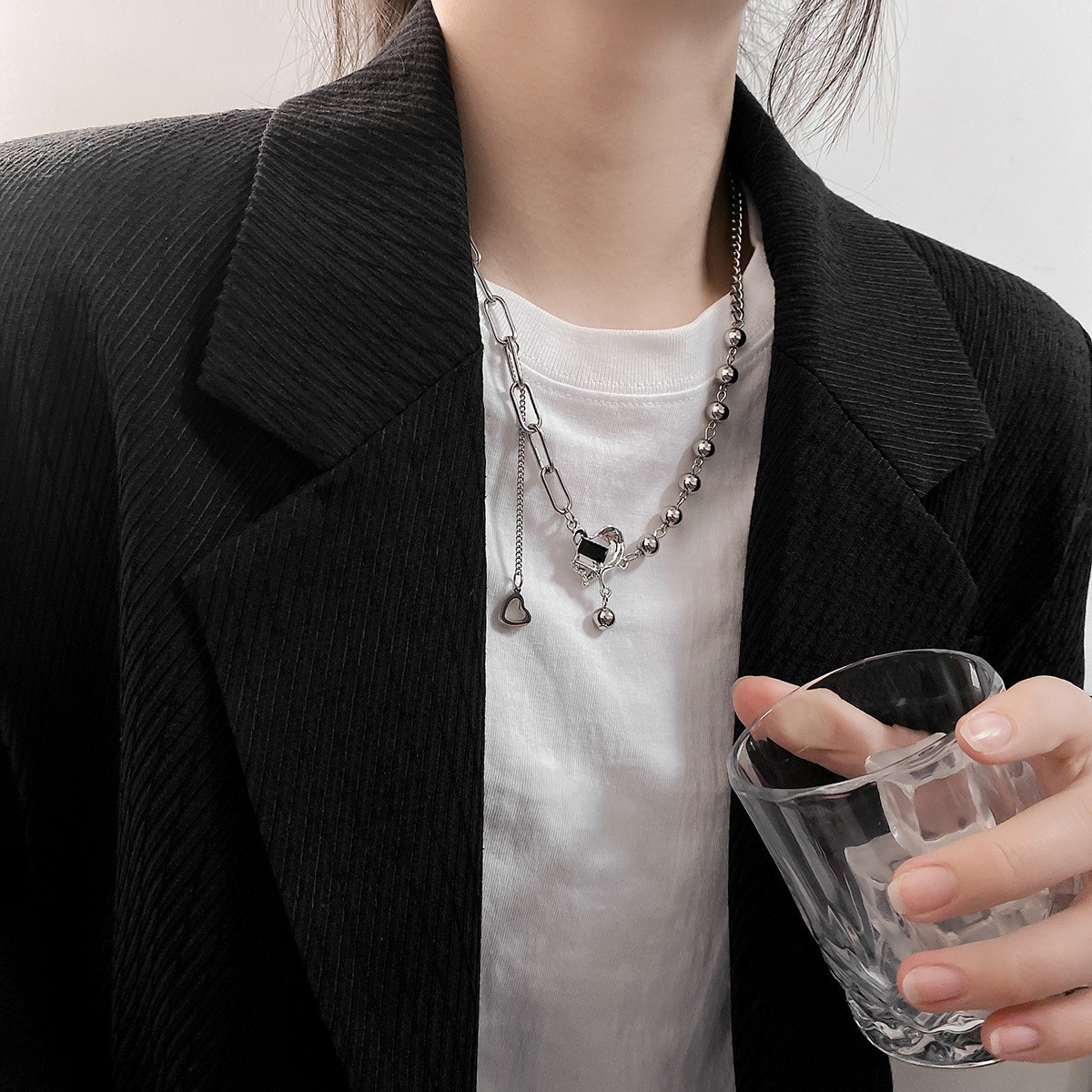 검은 보석 티타늄 스틸 체인 바느질 목걸이 여성 틈새 힙합 콜드 스타일 할로우 러브 펜던트 모직 체인스토어 가기