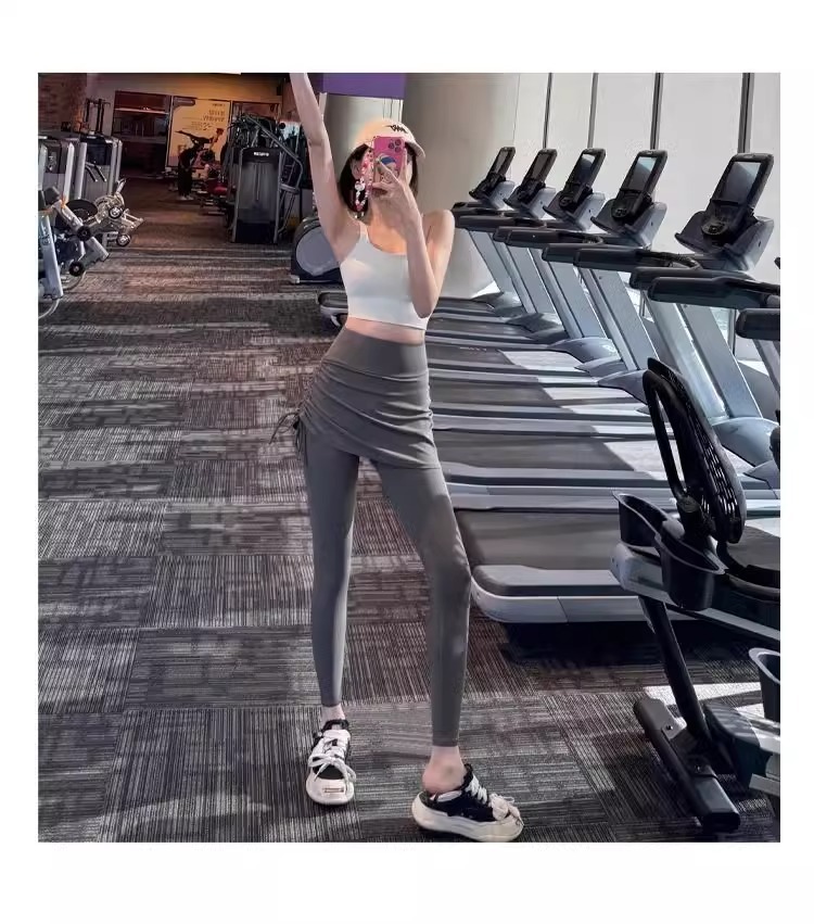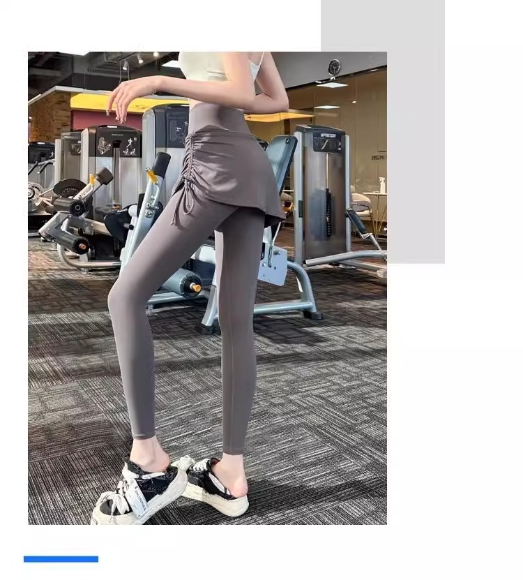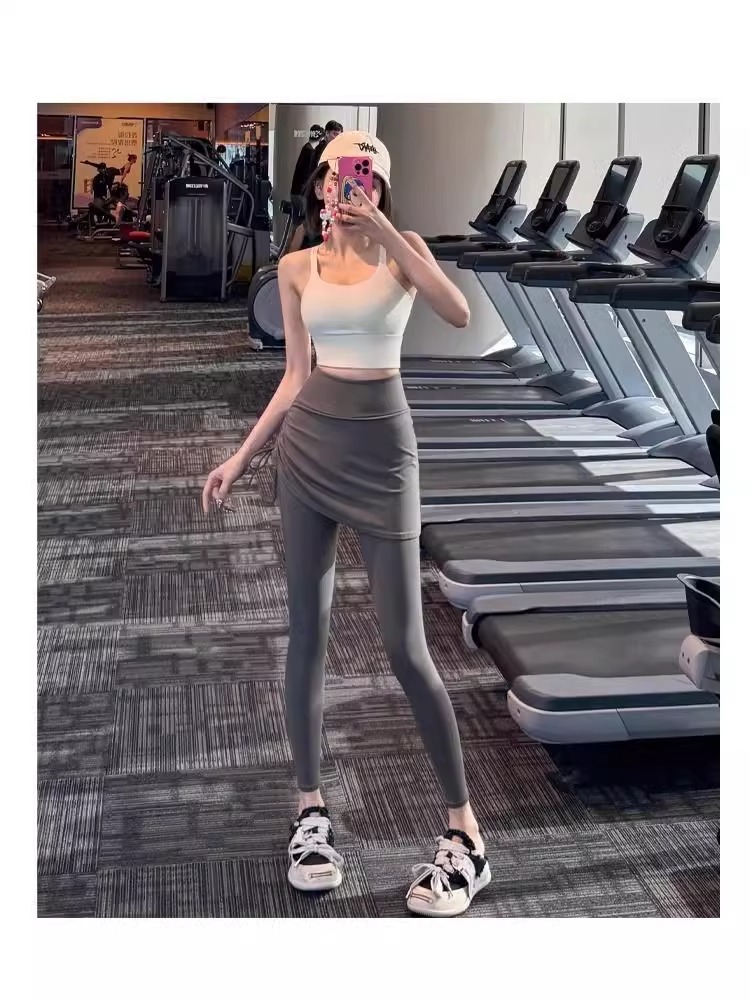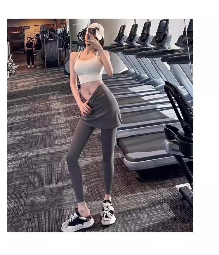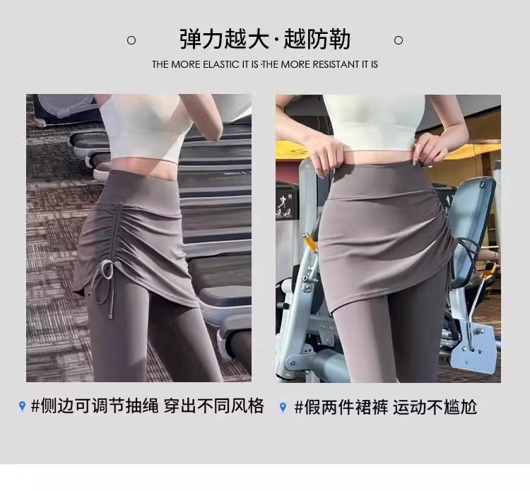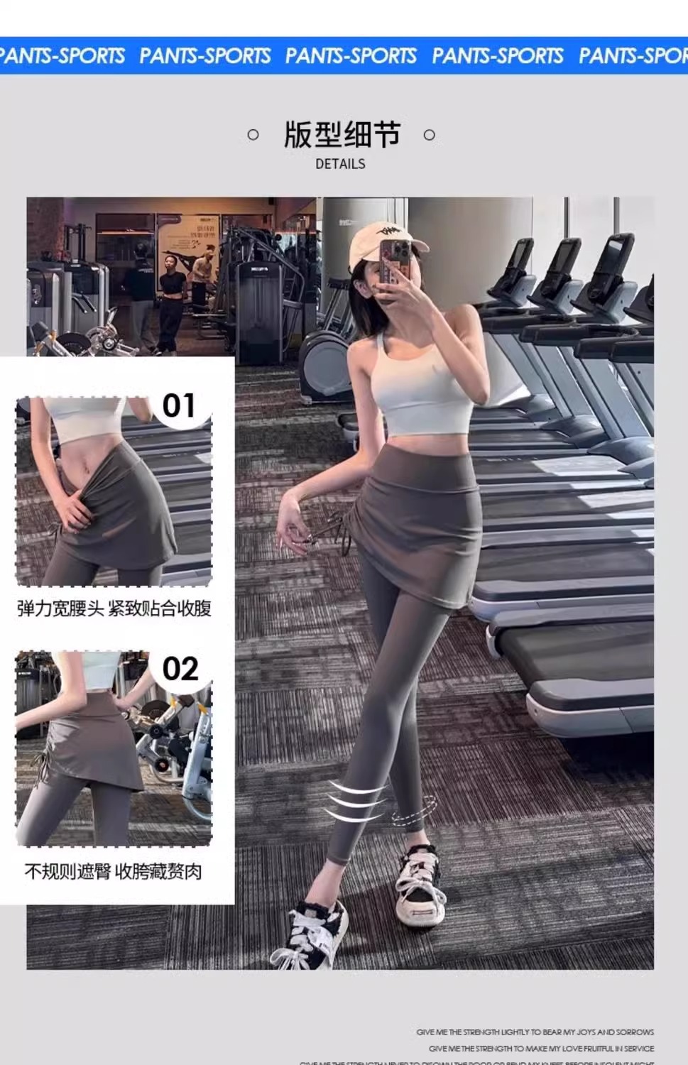 가벼운 뚱뚱한 소녀를위한 플러스 사이즈 요가 바지 여성의 엉덩이를 덮는 가짜 2 조각 단단한 스커트 바지 높은 허리 엉덩이 리프팅 피트니스 바지스토어 가기