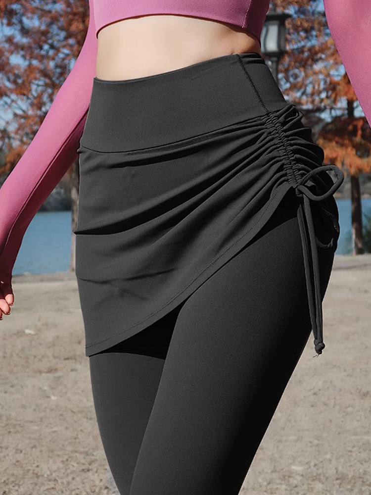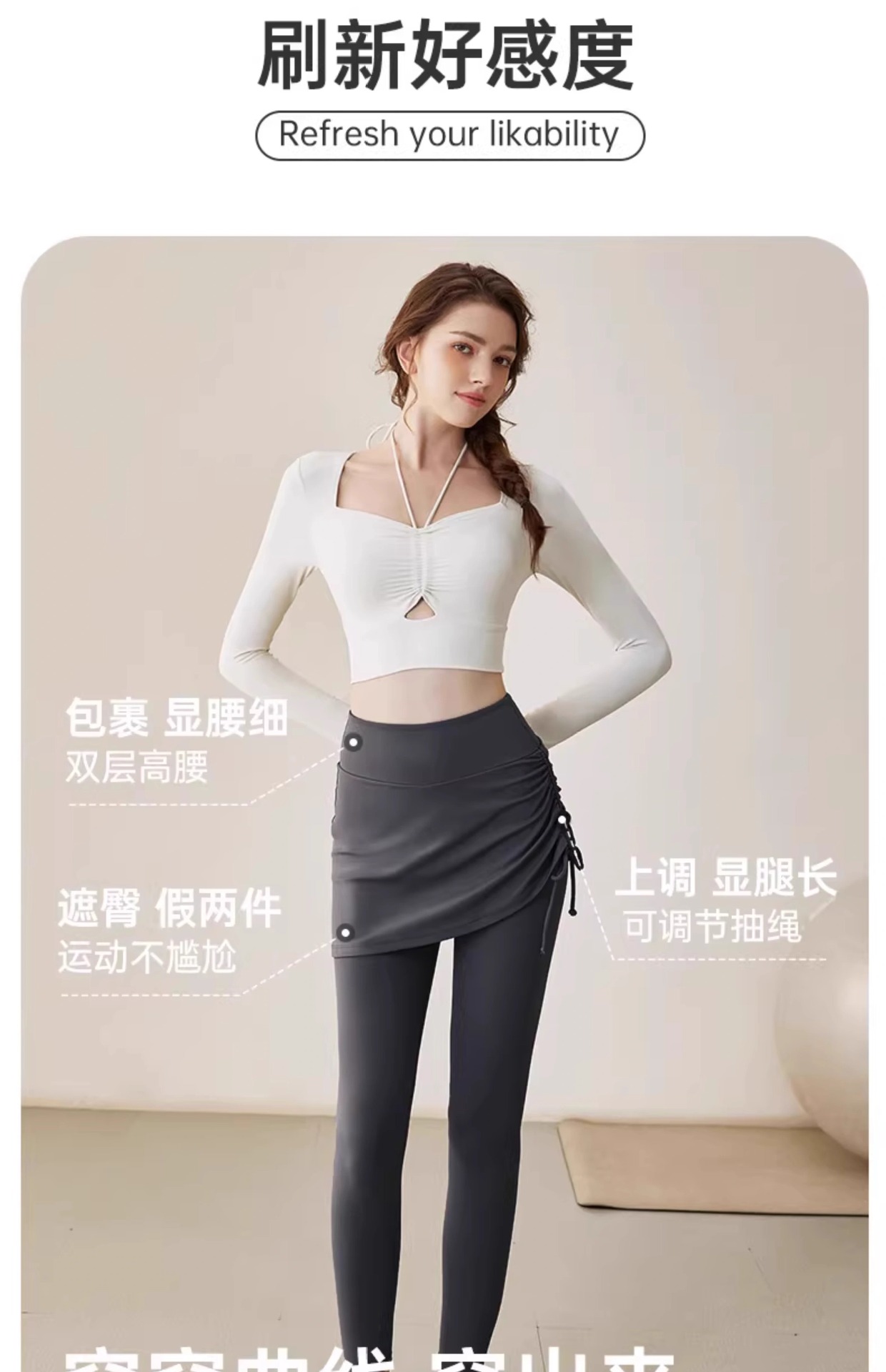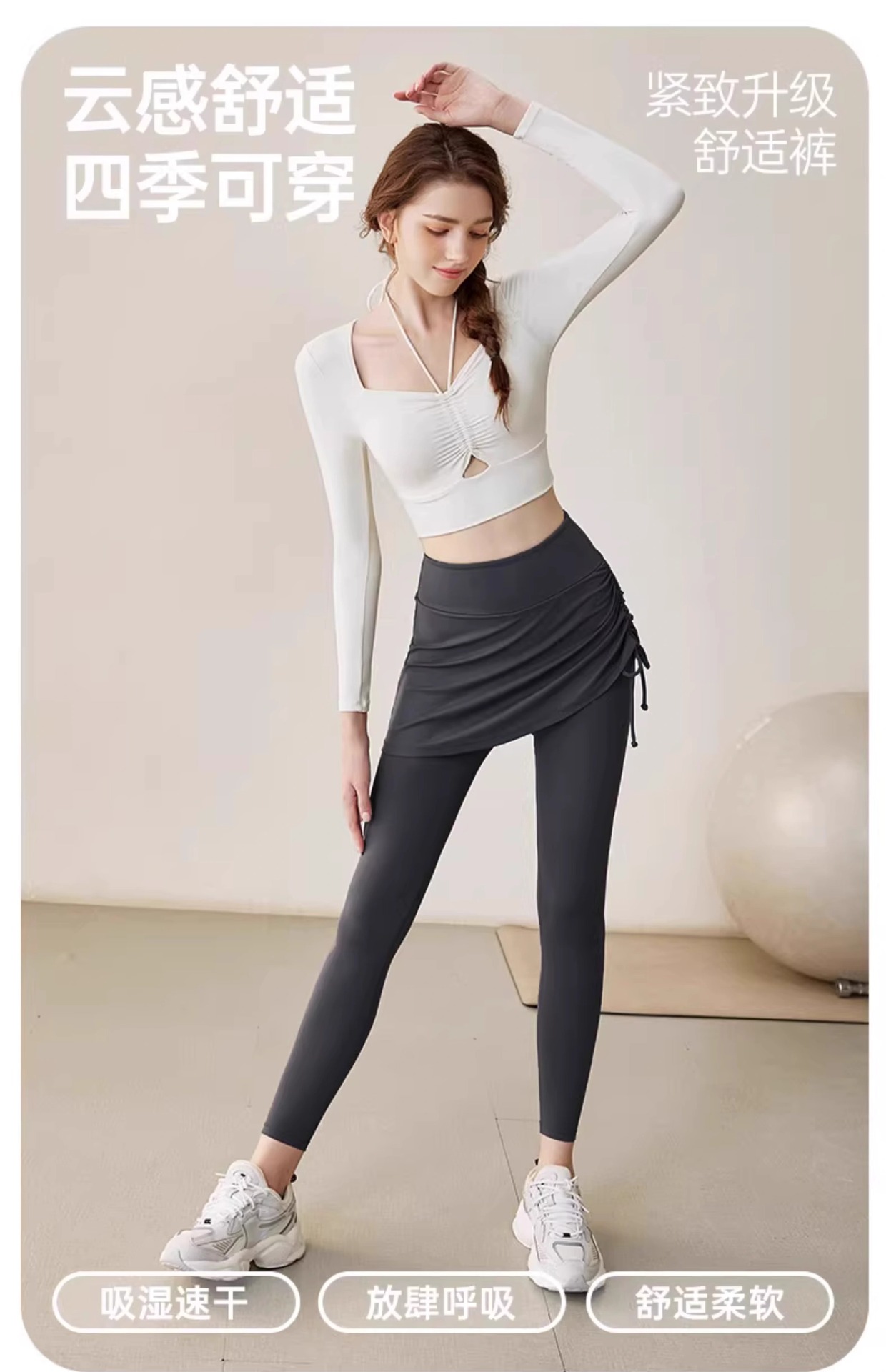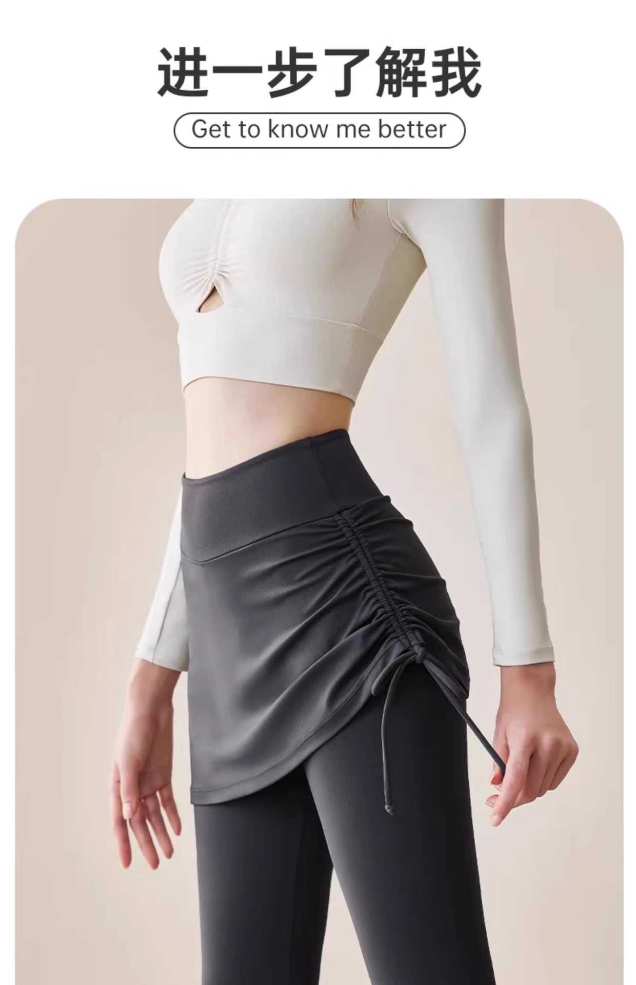 가벼운 뚱뚱한 소녀를위한 플러스 사이즈 요가 바지 여성의 엉덩이를 덮는 가짜 2 조각 단단한 스커트 바지 높은 허리 엉덩이 리프팅 피트니스 바지스토어 가기