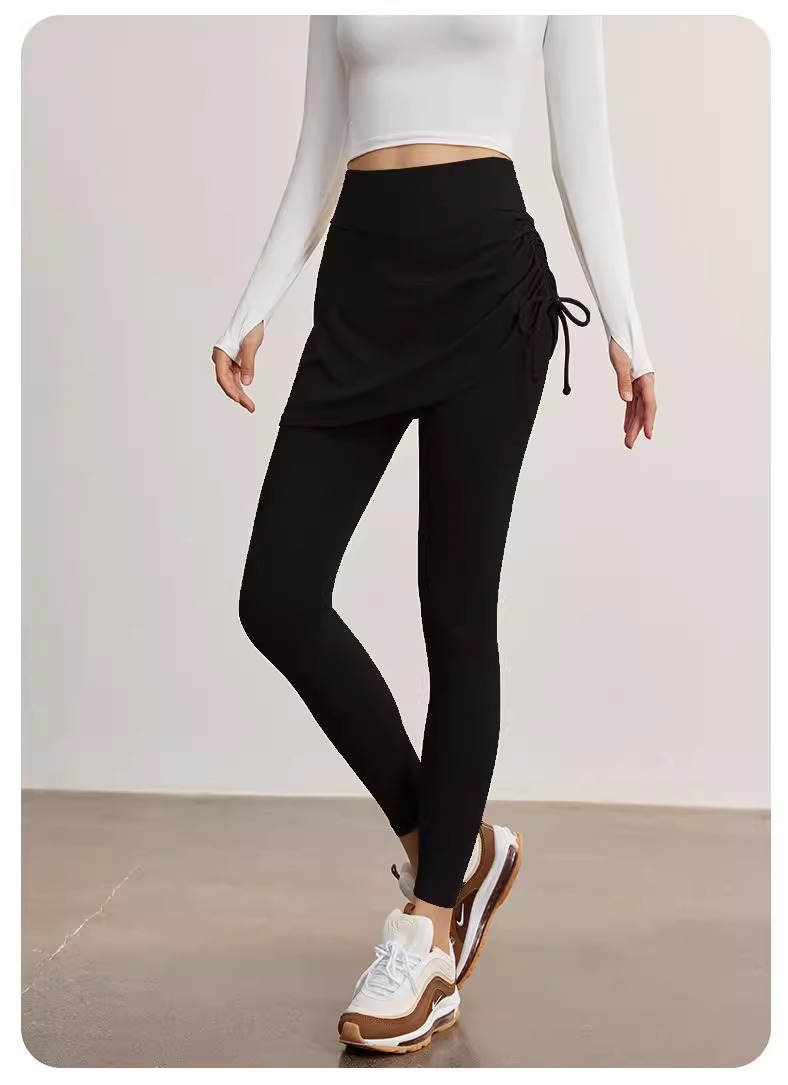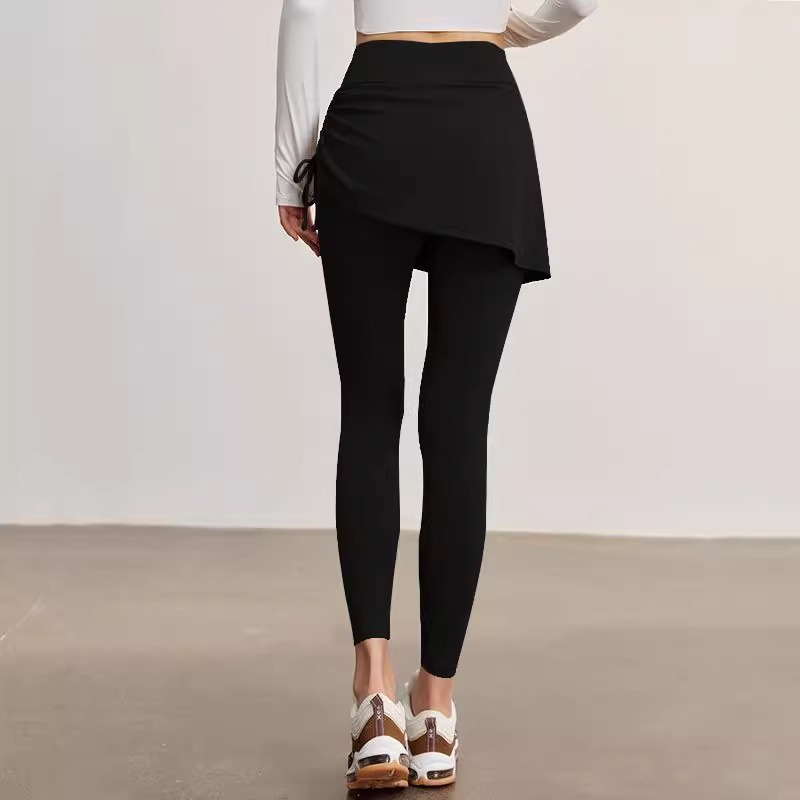 가벼운 뚱뚱한 소녀를위한 플러스 사이즈 요가 바지 여성의 엉덩이를 덮는 가짜 2 조각 단단한 스커트 바지 높은 허리 엉덩이 리프팅 피트니스 바지
