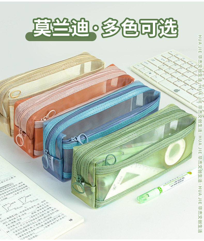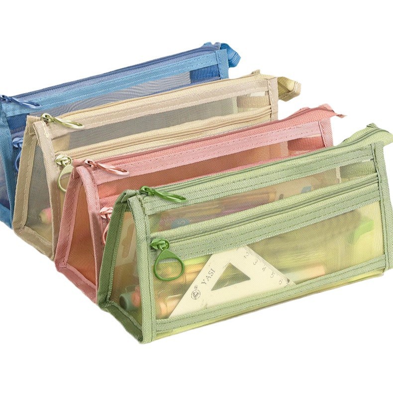 투명한 메쉬 연필 가방 Ins 높은 가치의 문구 가방 초등 학생을위한 간단한 높은 수준의 연필 가방 대용량 더러운 방지