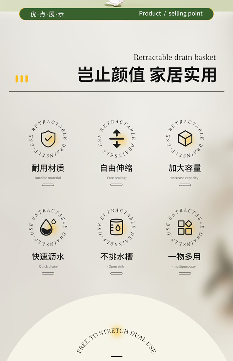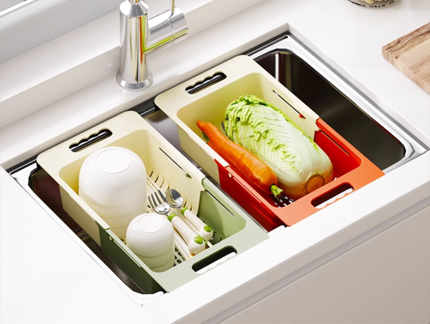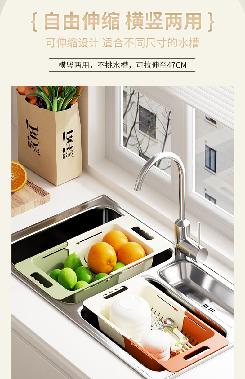 확장 가능한 드로잉 야채 세척 랙 배수 저장 그릇 랙 주방 싱크 다목적 조절 가능한 배수 바구니