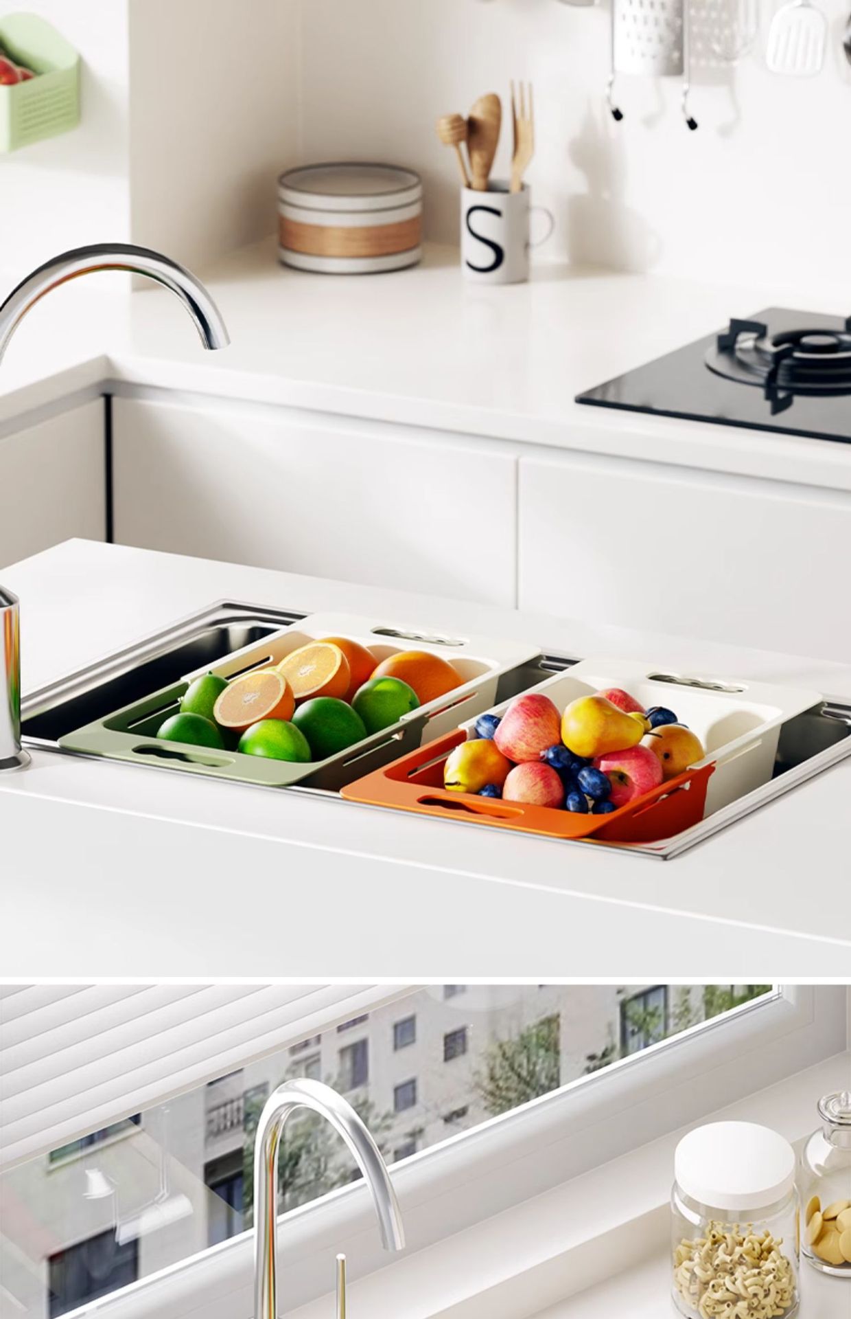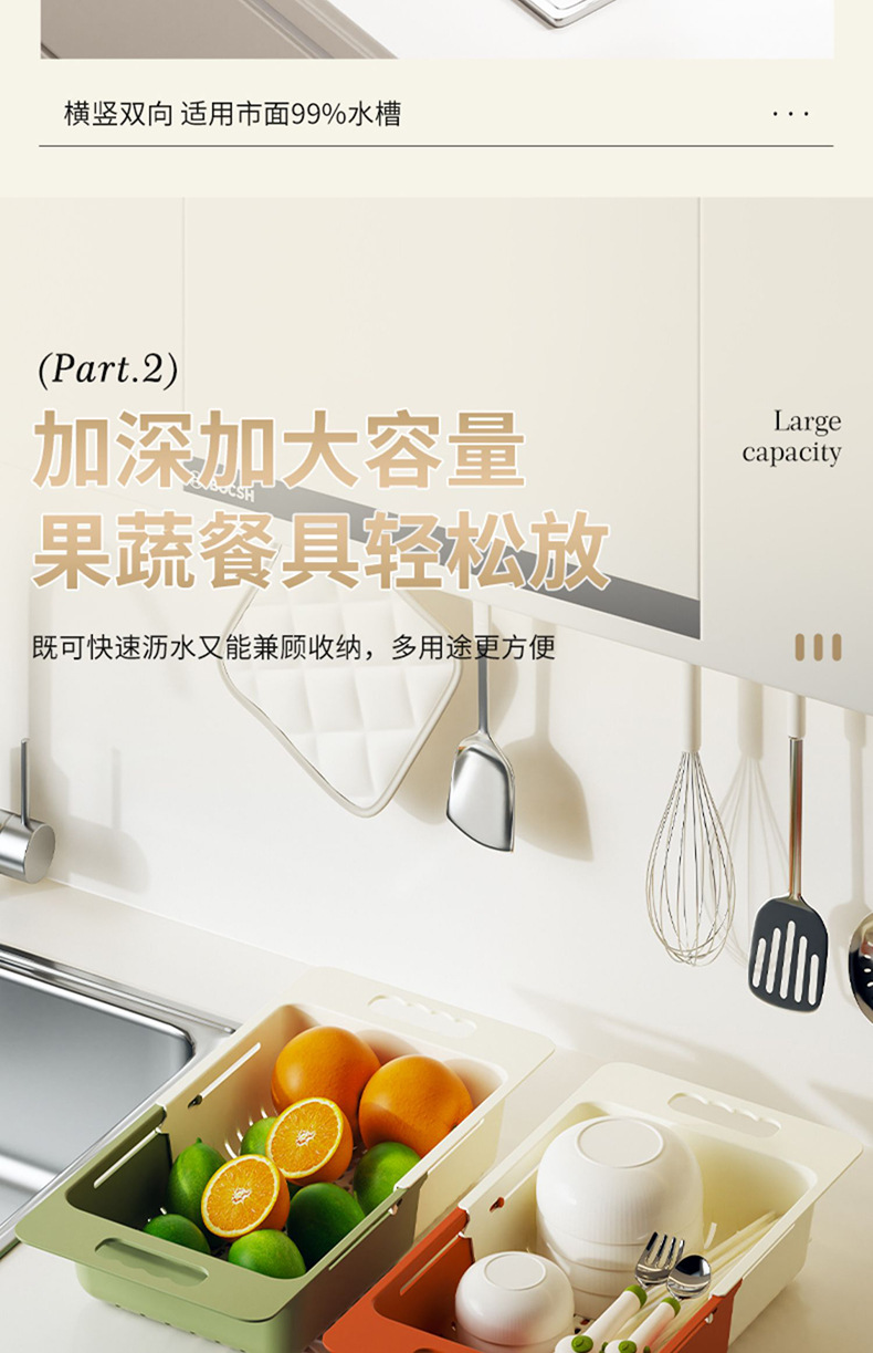 확장 가능한 드로잉 야채 세척 랙 배수 저장 그릇 랙 주방 싱크 다목적 조절 가능한 배수 바구니스토어 가기