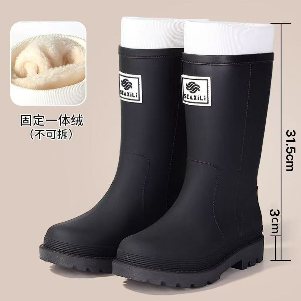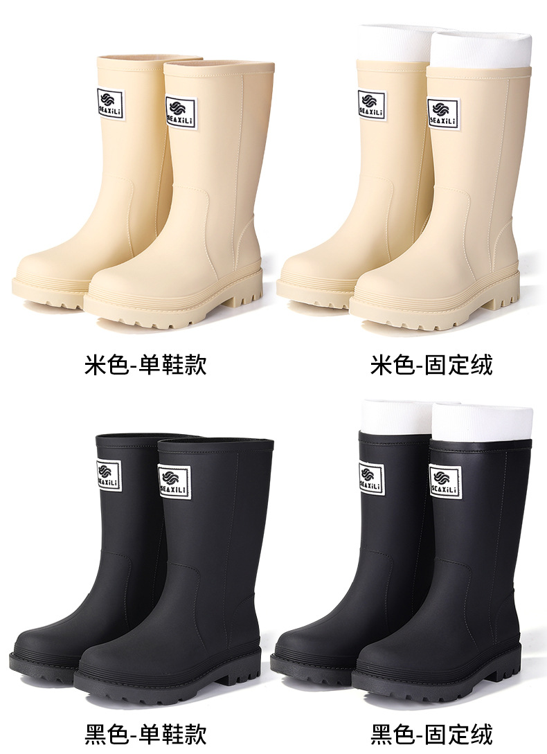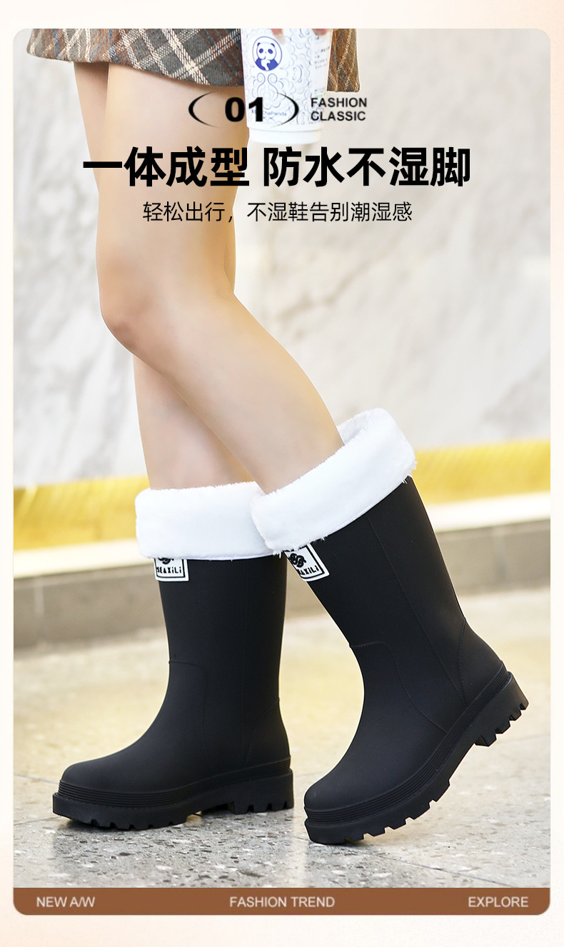 겨울 중간 튜브 장화 성인 여성 올인원 기모 따뜻한 장화 내마모성 두꺼운 밑창 수화 미끄럼 방지 고무 신발