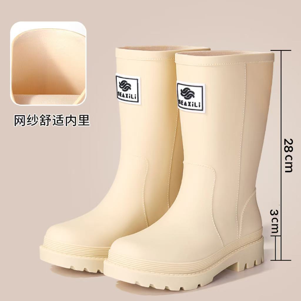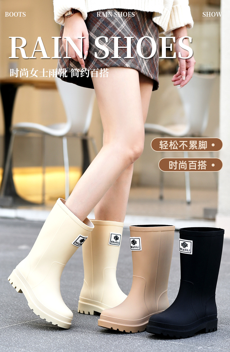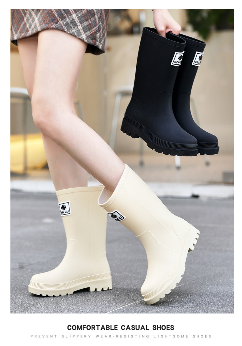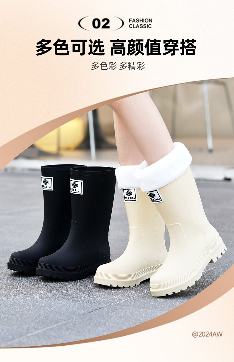 겨울 중간 튜브 장화 성인 여성 올인원 기모 따뜻한 장화 내마모성 두꺼운 밑창 수화 미끄럼 방지 고무 신발