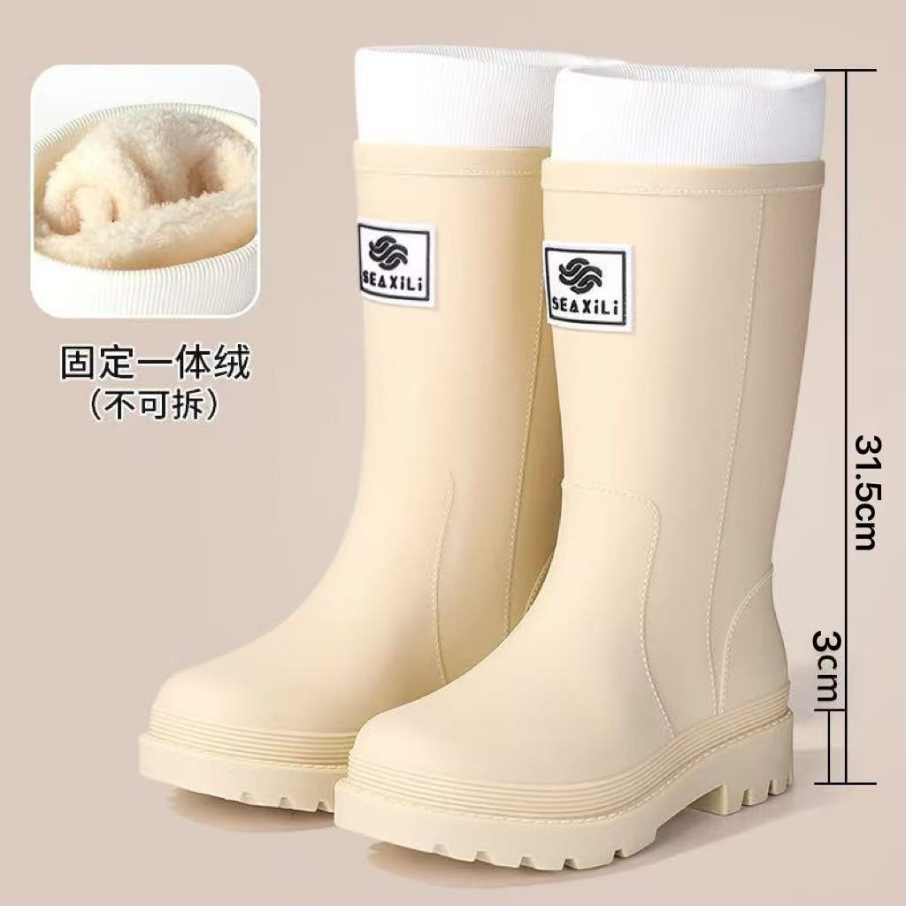 겨울 중간 튜브 장화 성인 여성 올인원 기모 따뜻한 장화 내마모성 두꺼운 밑창 수화 미끄럼 방지 고무 신발스토어 가기