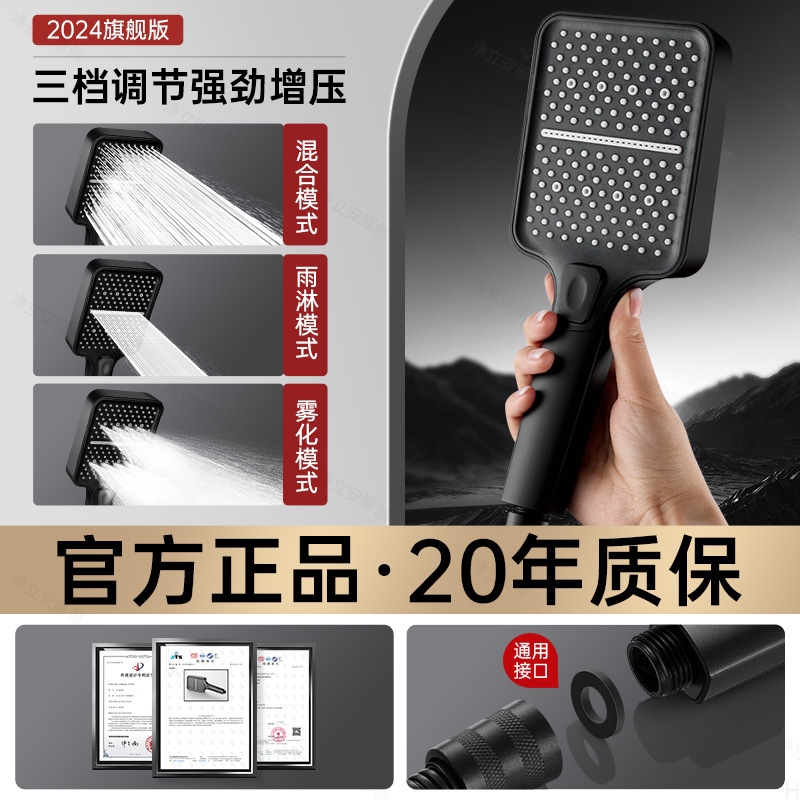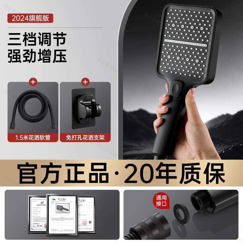 • 매트 블랙 3단 슈퍼차저 샤워 + 1.5m 호스 + 브래킷