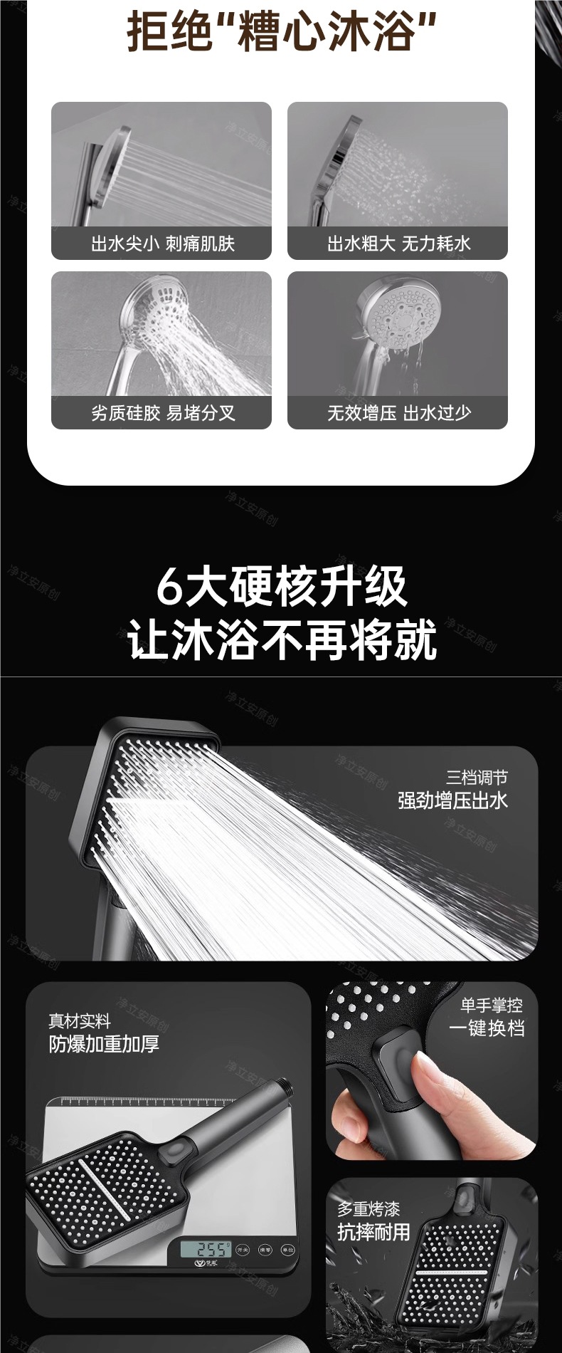 • 매트 블랙 3단 슈퍼차저 샤워 + 1.5m 호스