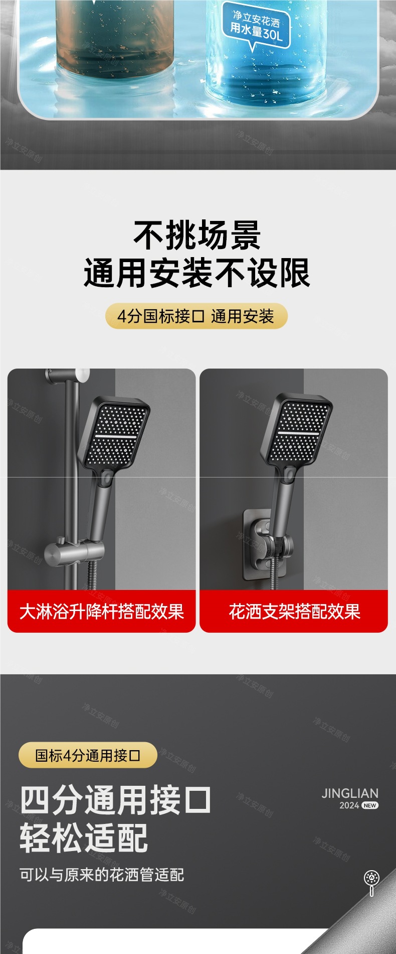 • 티타늄 그레이 3단 슈퍼차저 샤워 + 1.5m 호스 + 브래킷
