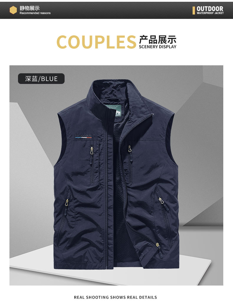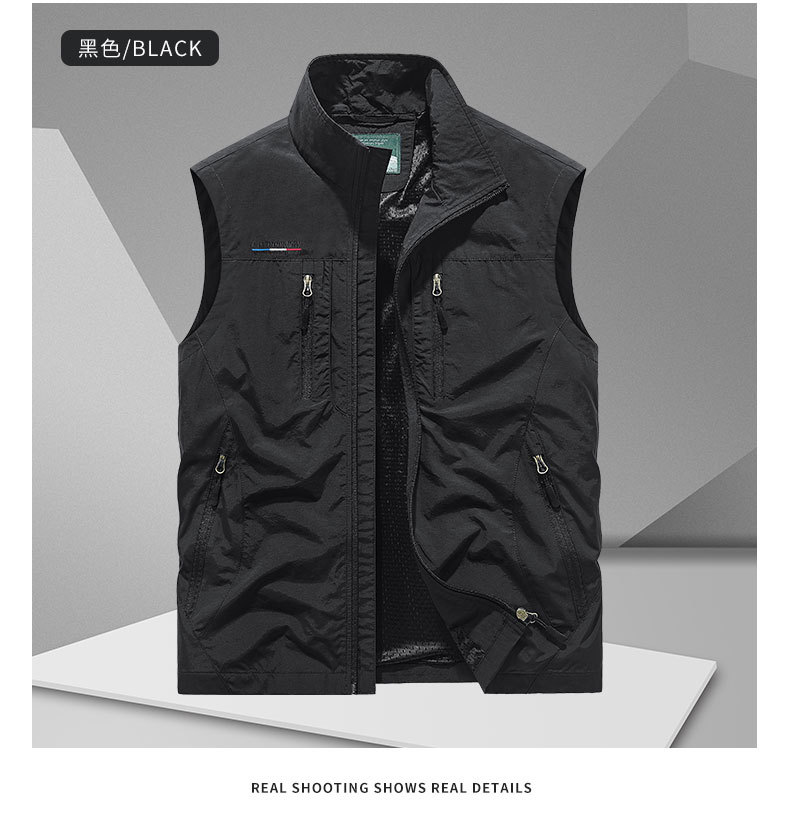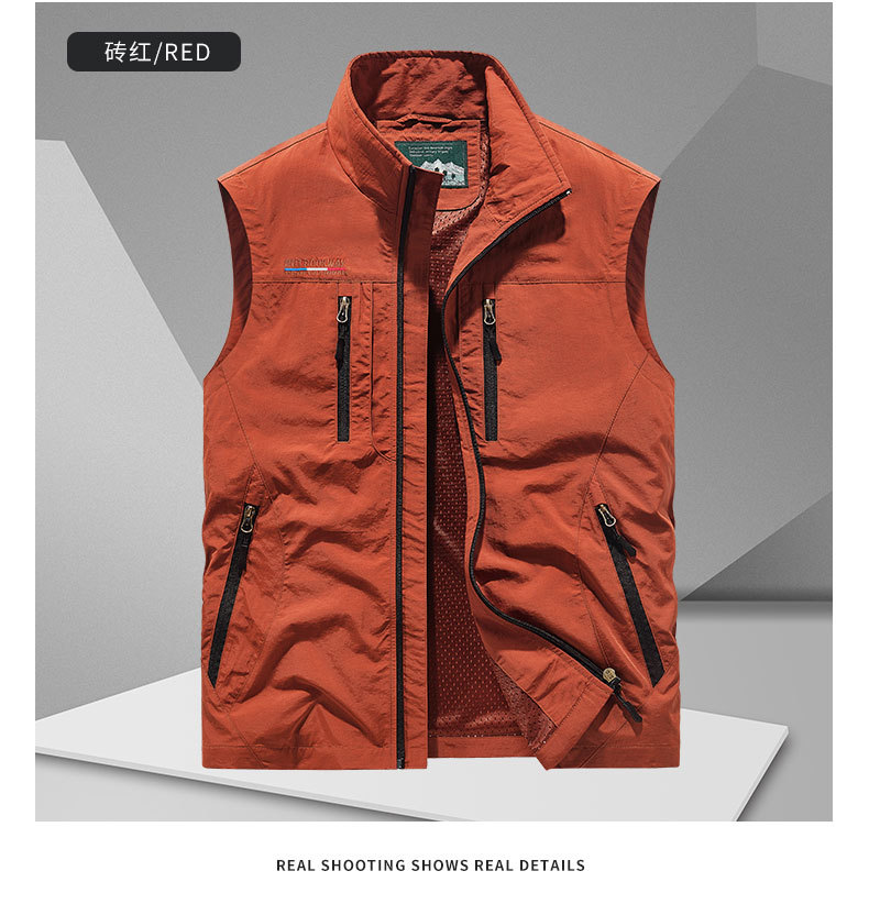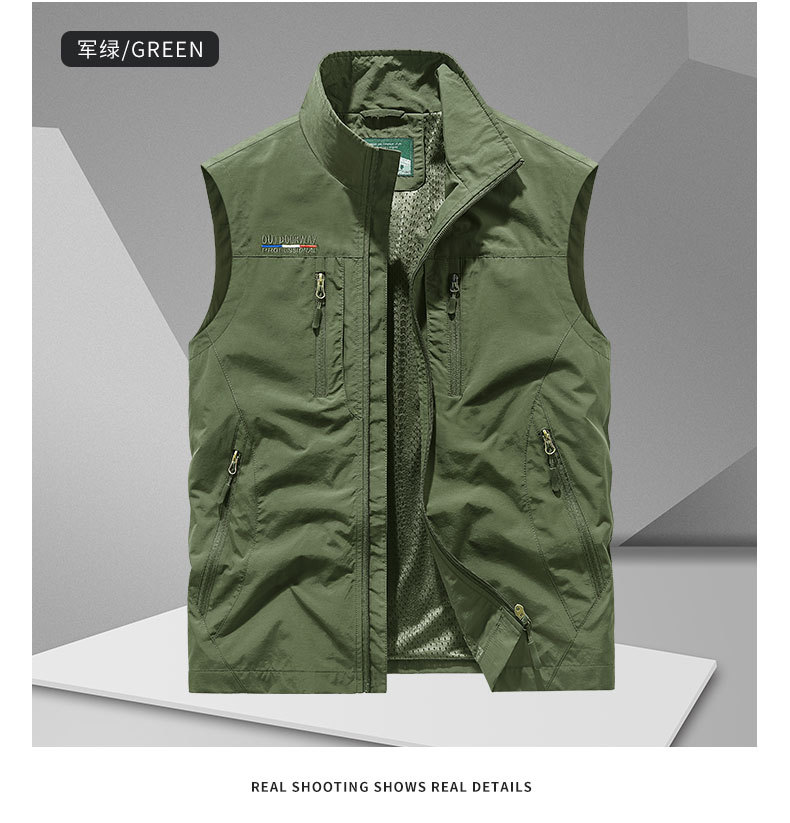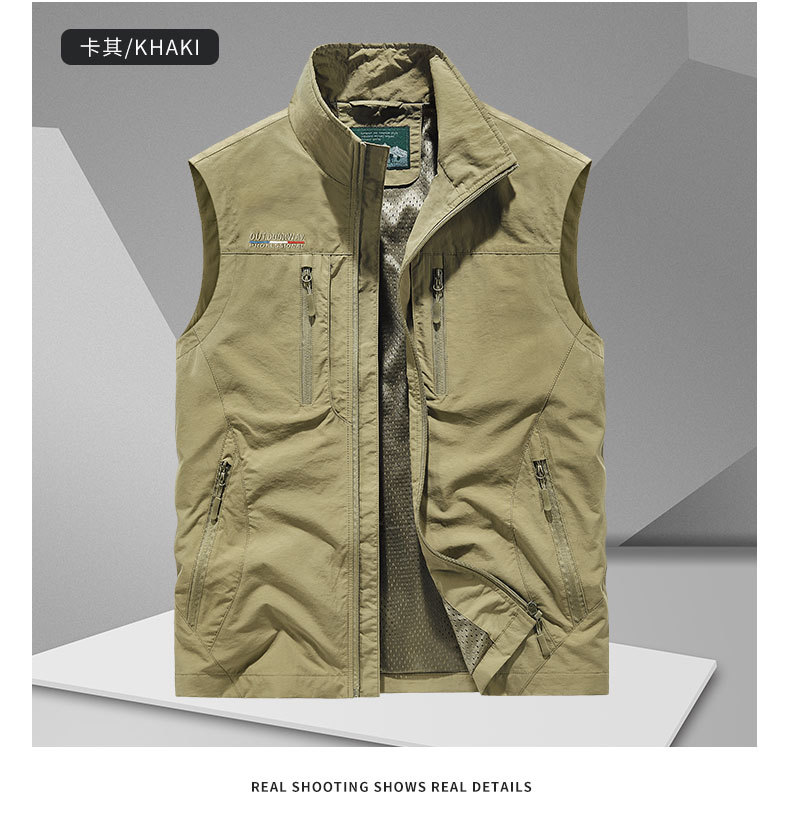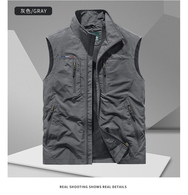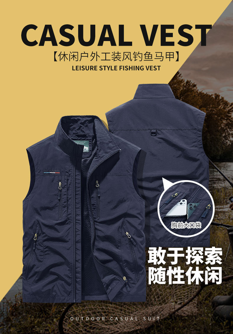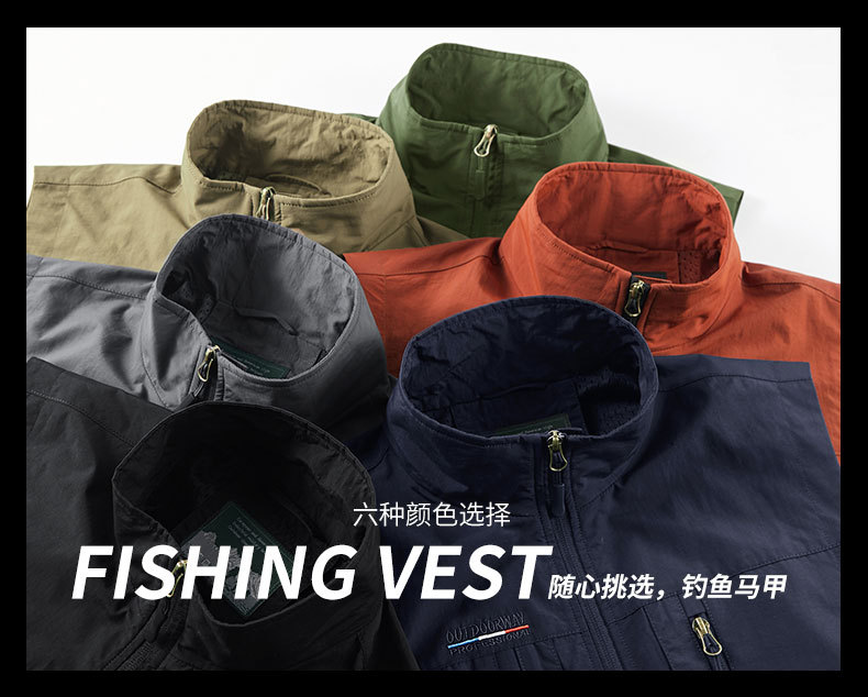 국경 간 남성 봄과 가을 말 클립 멀티 포켓 남성 야외 낚시 빠른 건조 민소매 재킷 칼라 캐주얼 느슨한 플러스 사이즈스토어 가기