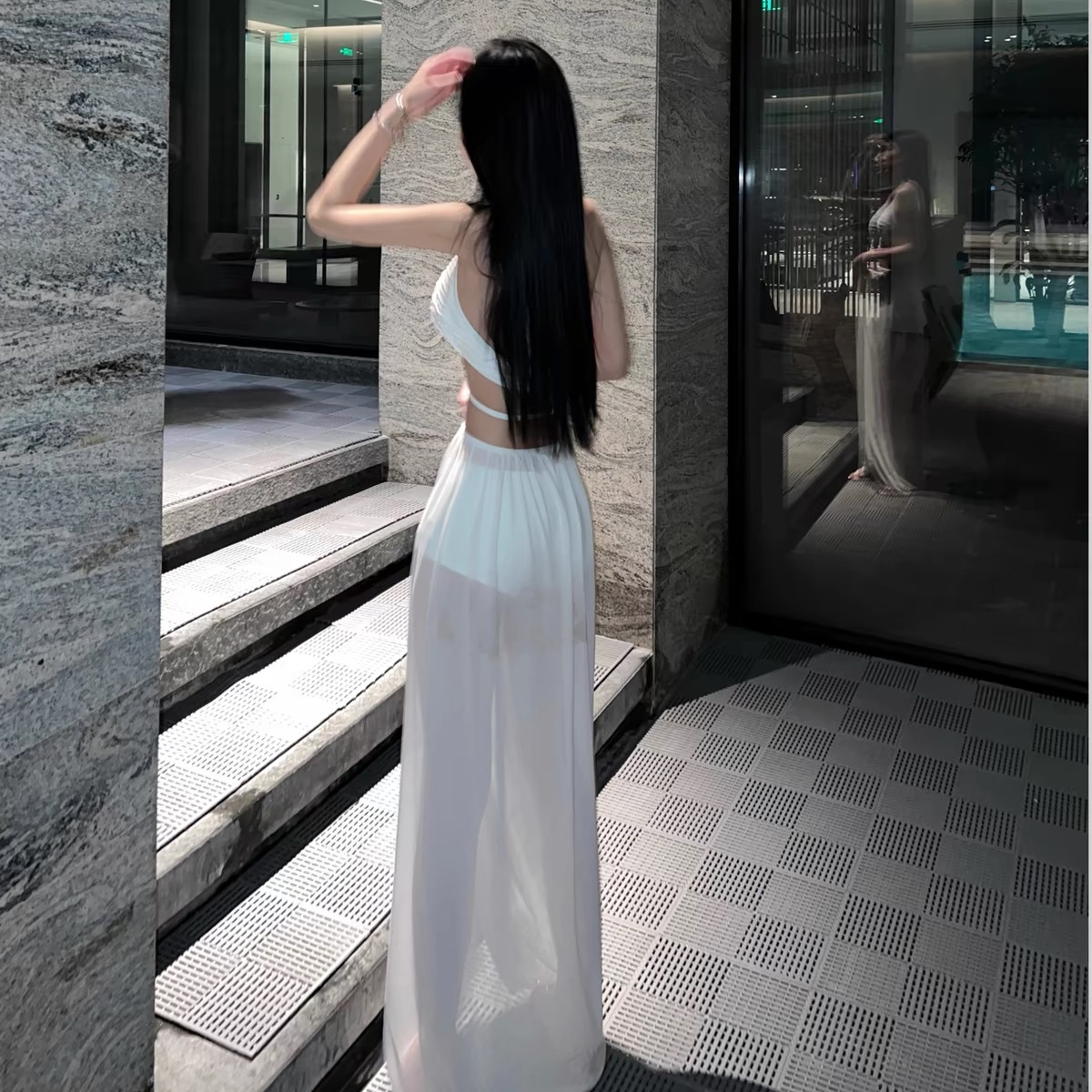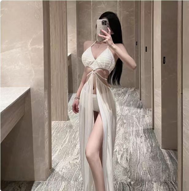 화이트 스플릿 비키니 수영복 여성용 투피스 세트 온천 휴가 작은 가슴 섹시한 뜨거운 소녀 큰 가슴 하이 엔드 해변스토어 가기