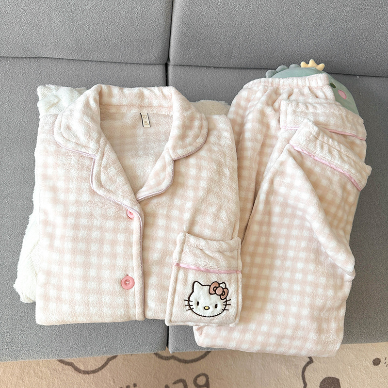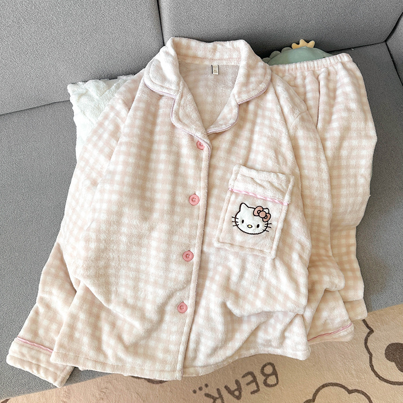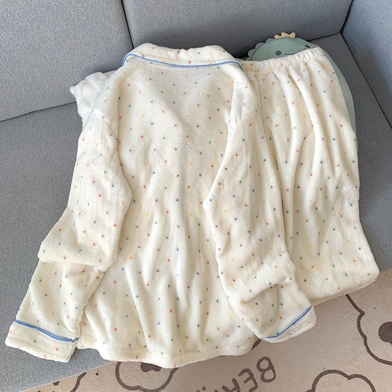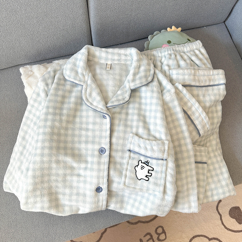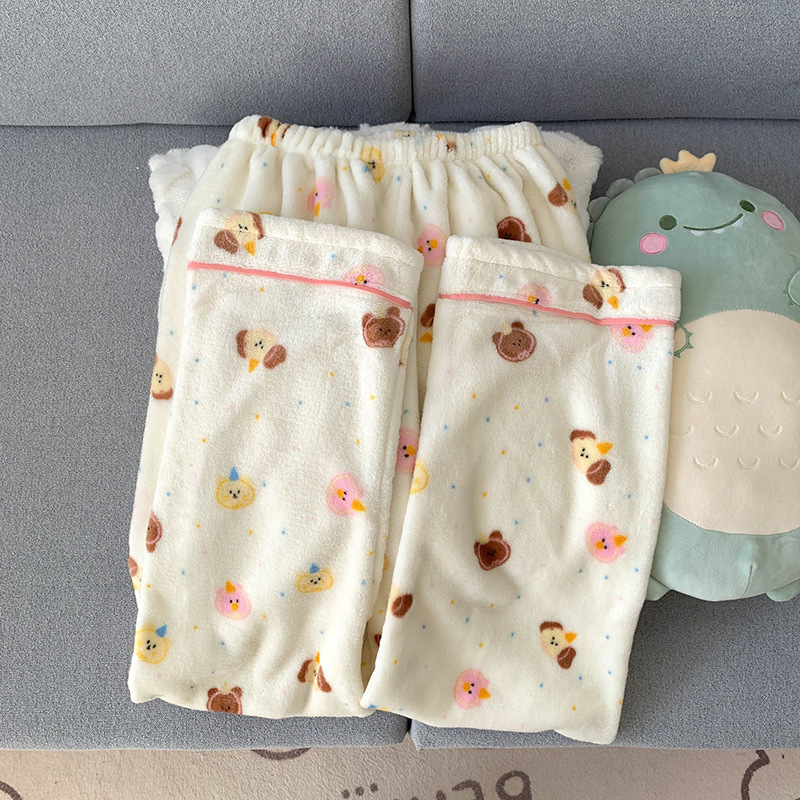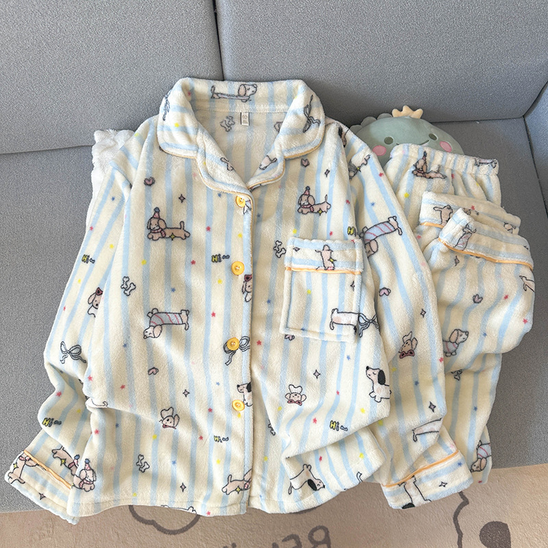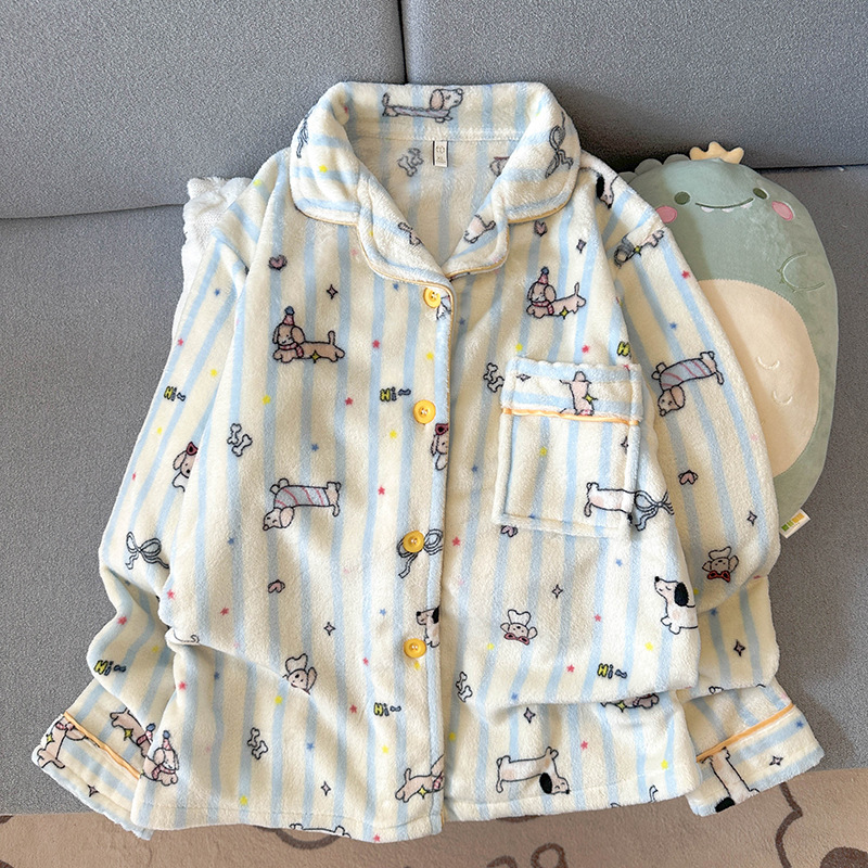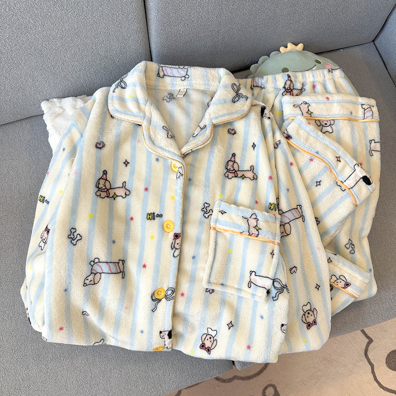 잠옷 여성의 가을과 겨울 산호 양털 두꺼운 귀여운 만화 플란넬 따뜻한 겨울 의상 홈 의류 세트