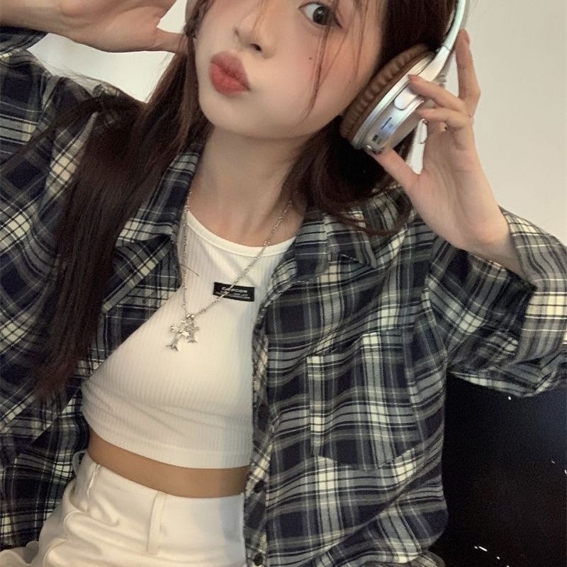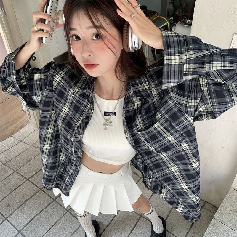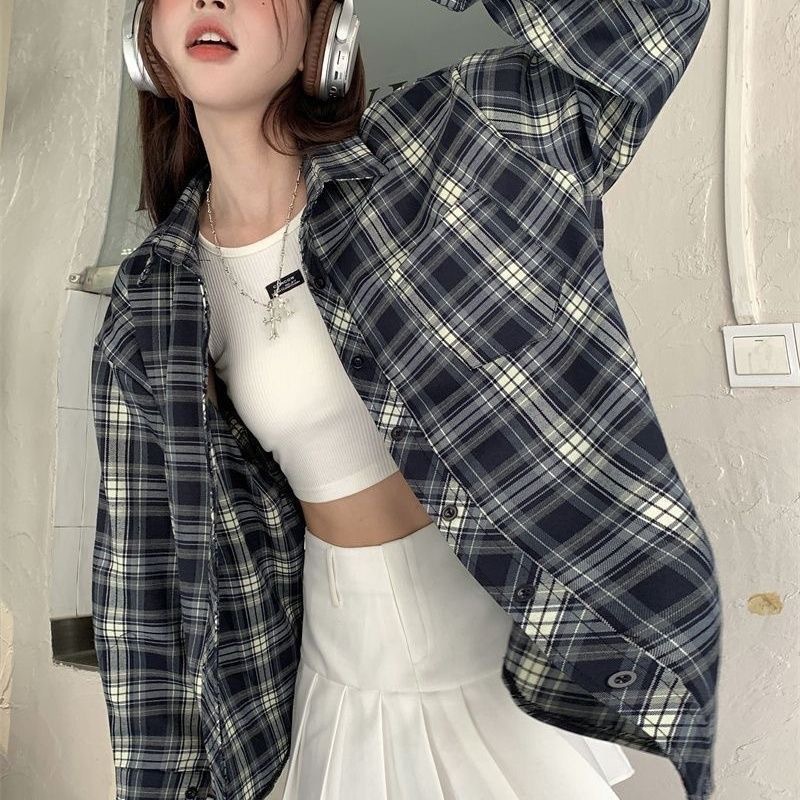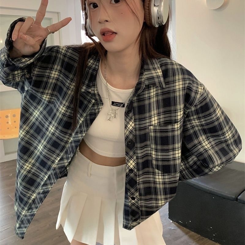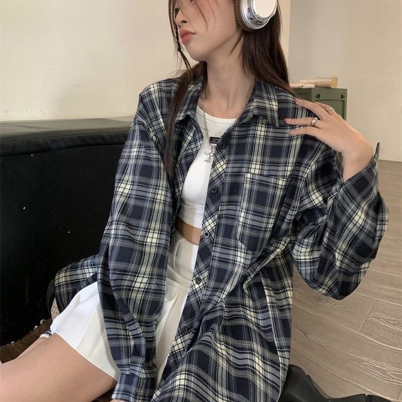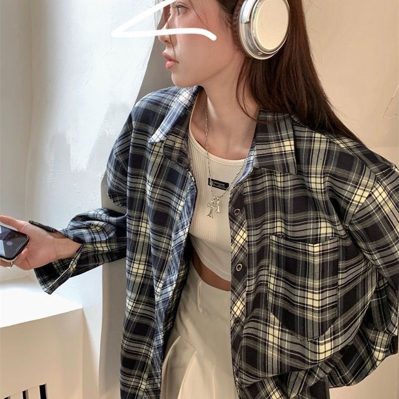 디자인 센스 틈새 긴 소매 셔츠 여성의 봄과 가을 빈티지 체크 셔츠 재킷 느슨한 캐주얼 폴로 칼라 탑 트렌디스토어 가기
