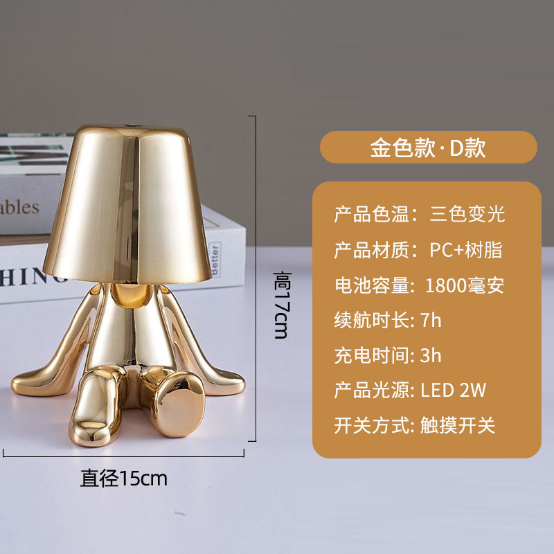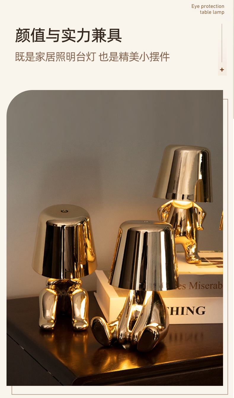 국경 간 골든 맨 테이블 램프 장식 테이블 램프 레스토랑 커피 숍 홈 장식 분위기 램프 사상가 나이트 라이트