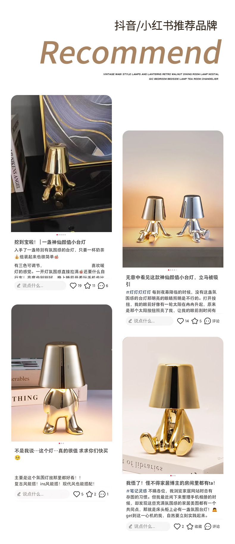 국경 간 골든 맨 테이블 램프 장식 테이블 램프 레스토랑 커피 숍 홈 장식 분위기 램프 사상가 나이트 라이트스토어 가기