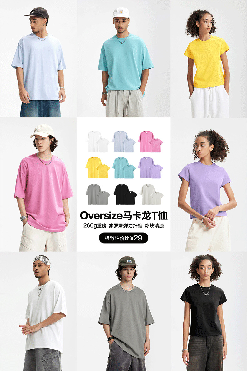 제이전 남성복 | 260G 마카롱 헤비웨이트 트렌디 브랜드 티셔츠 2026 신상 루즈핏 드롭숄더 솔로나 반팔 티셔츠스토어 가기